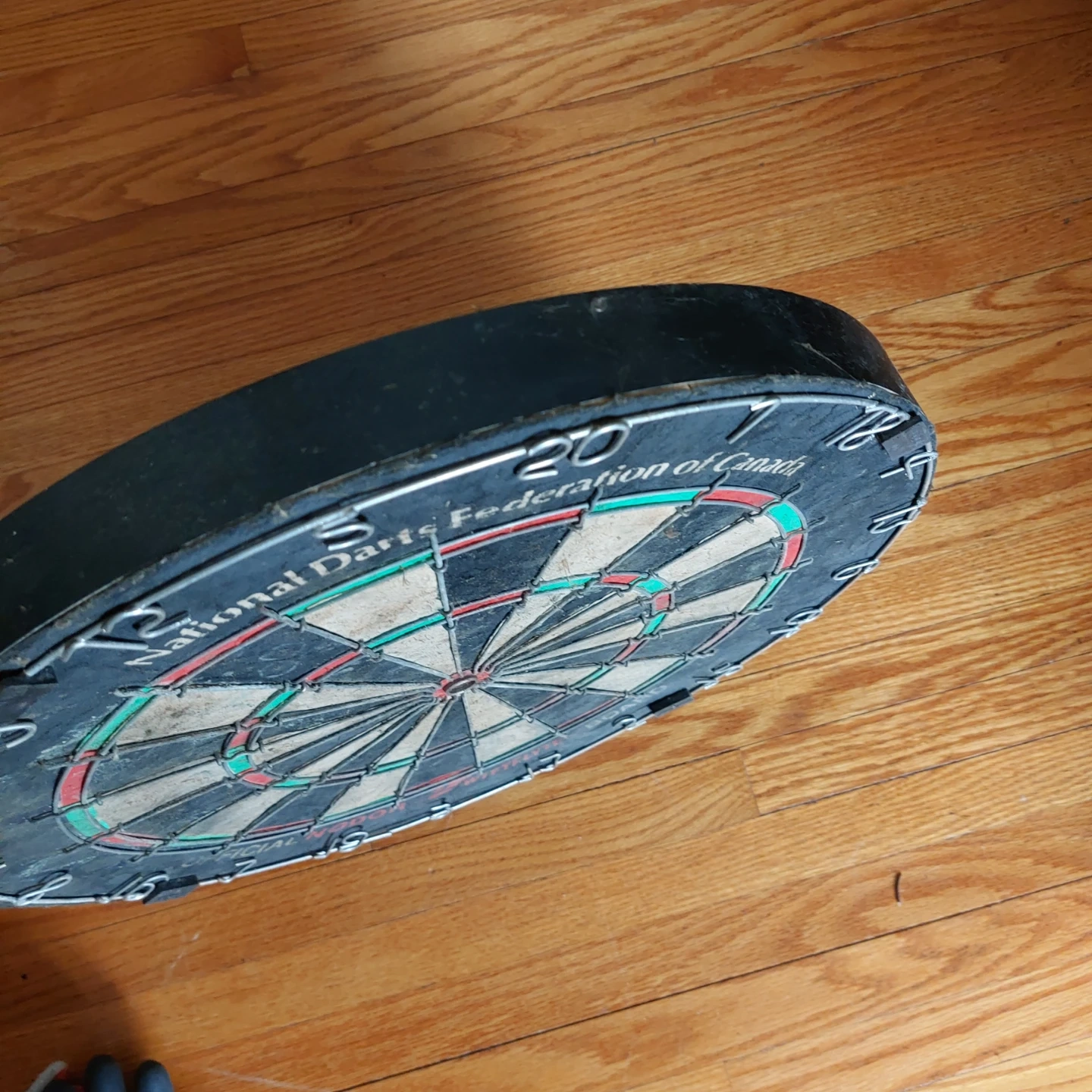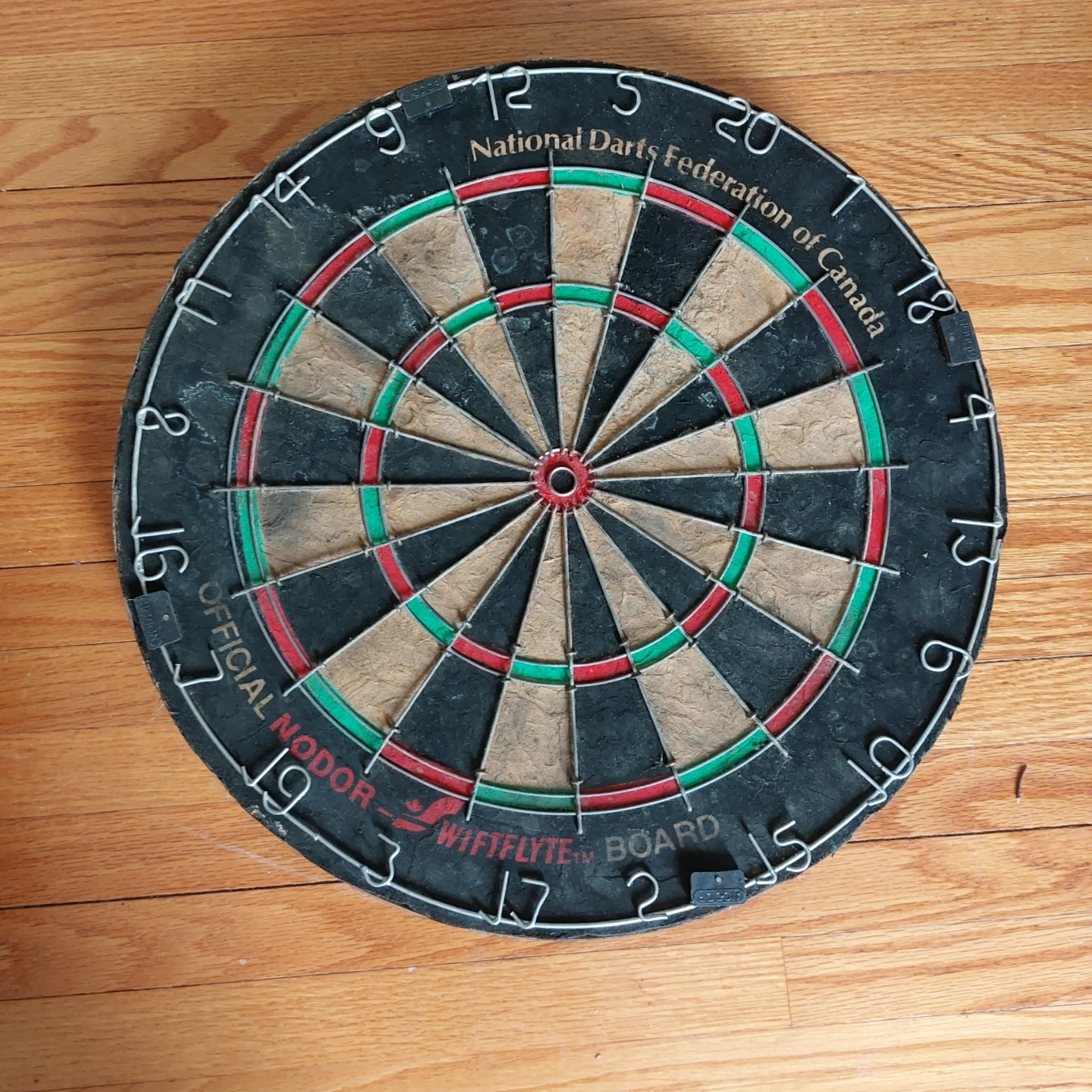 Official Nodder-Wifflyte Board by the National Darts Federation of Canada. Ready for your next game! Has some moisture staining as it was used in garage.