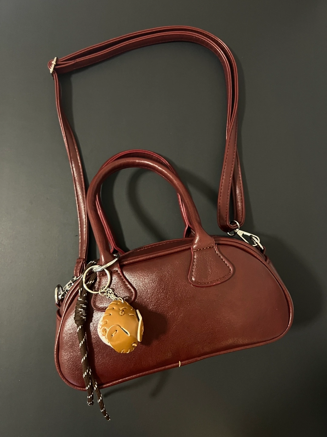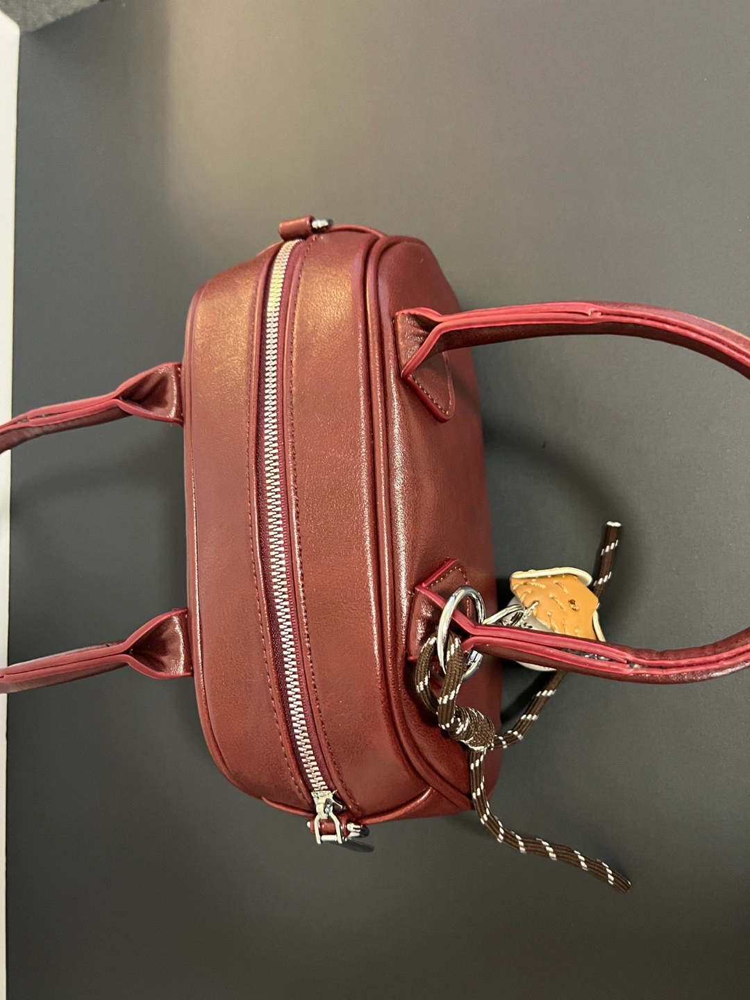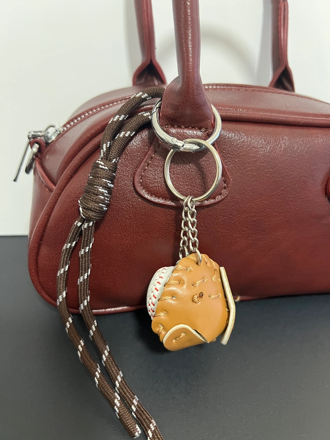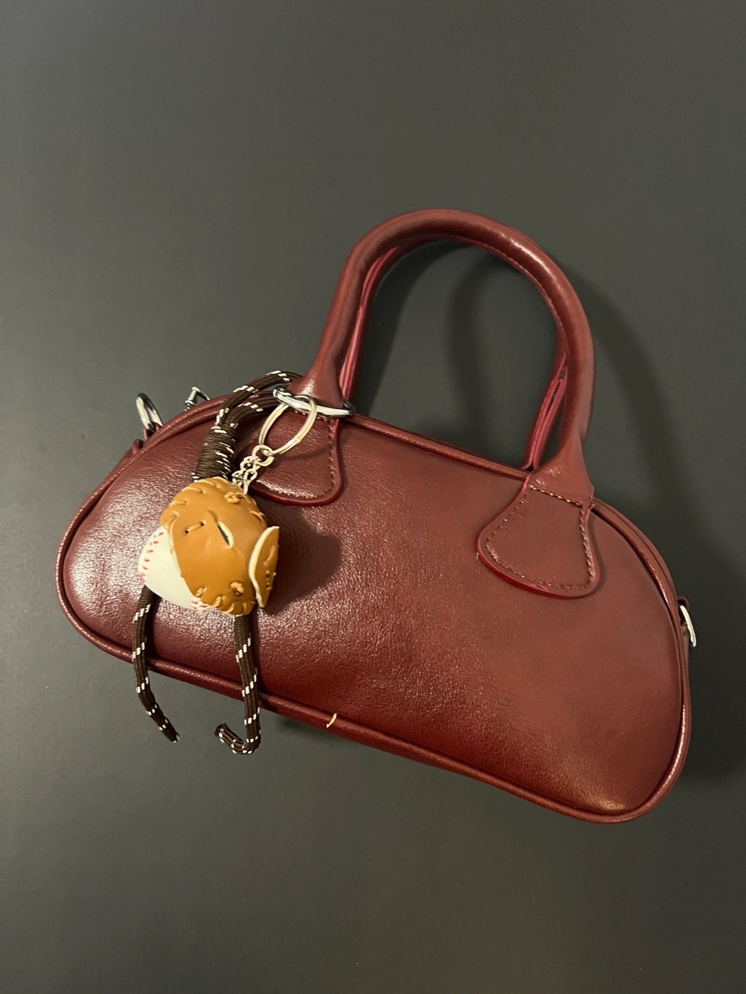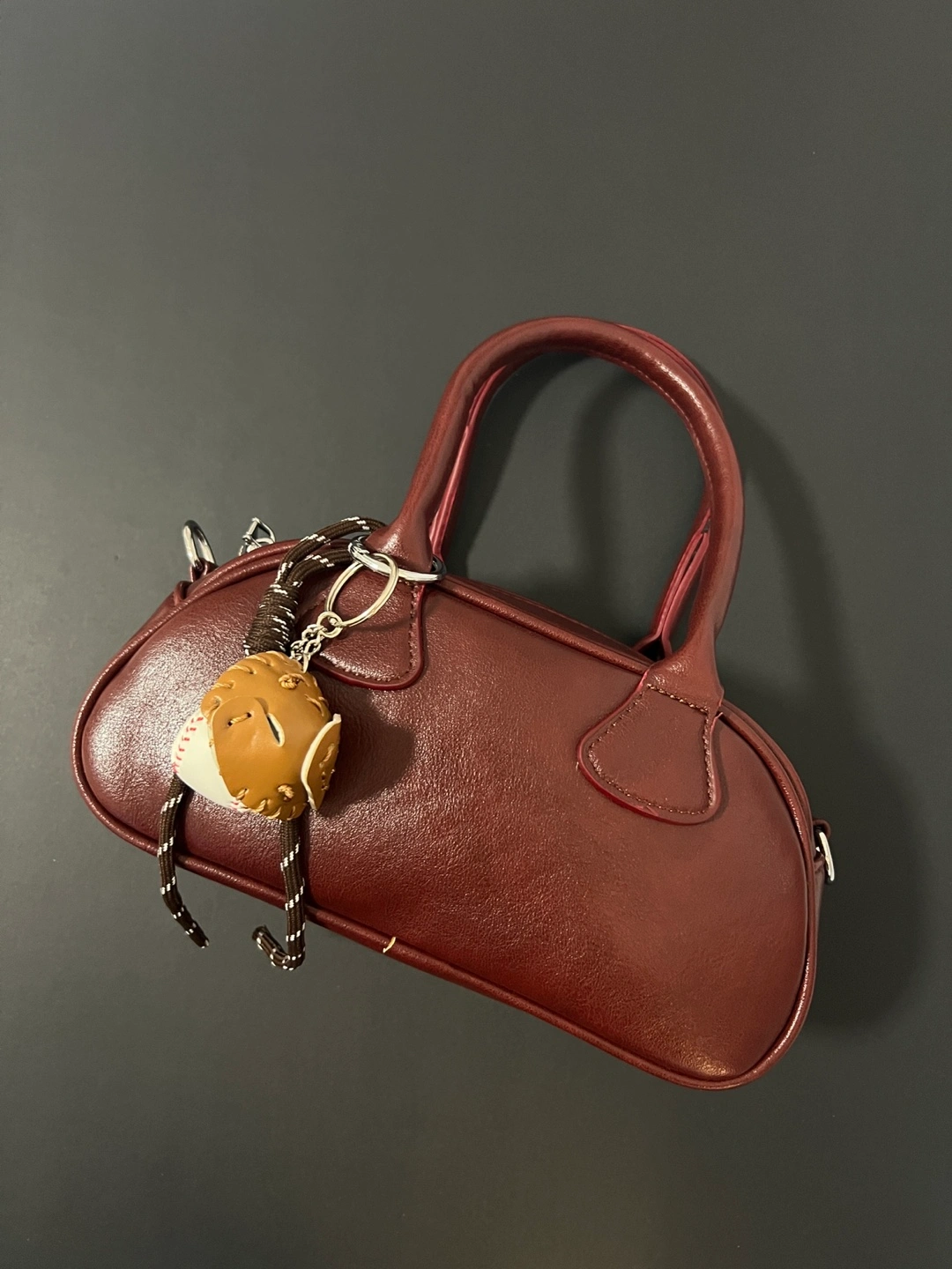 Burgundy Mini Satchel Bag with Baseball Keychain