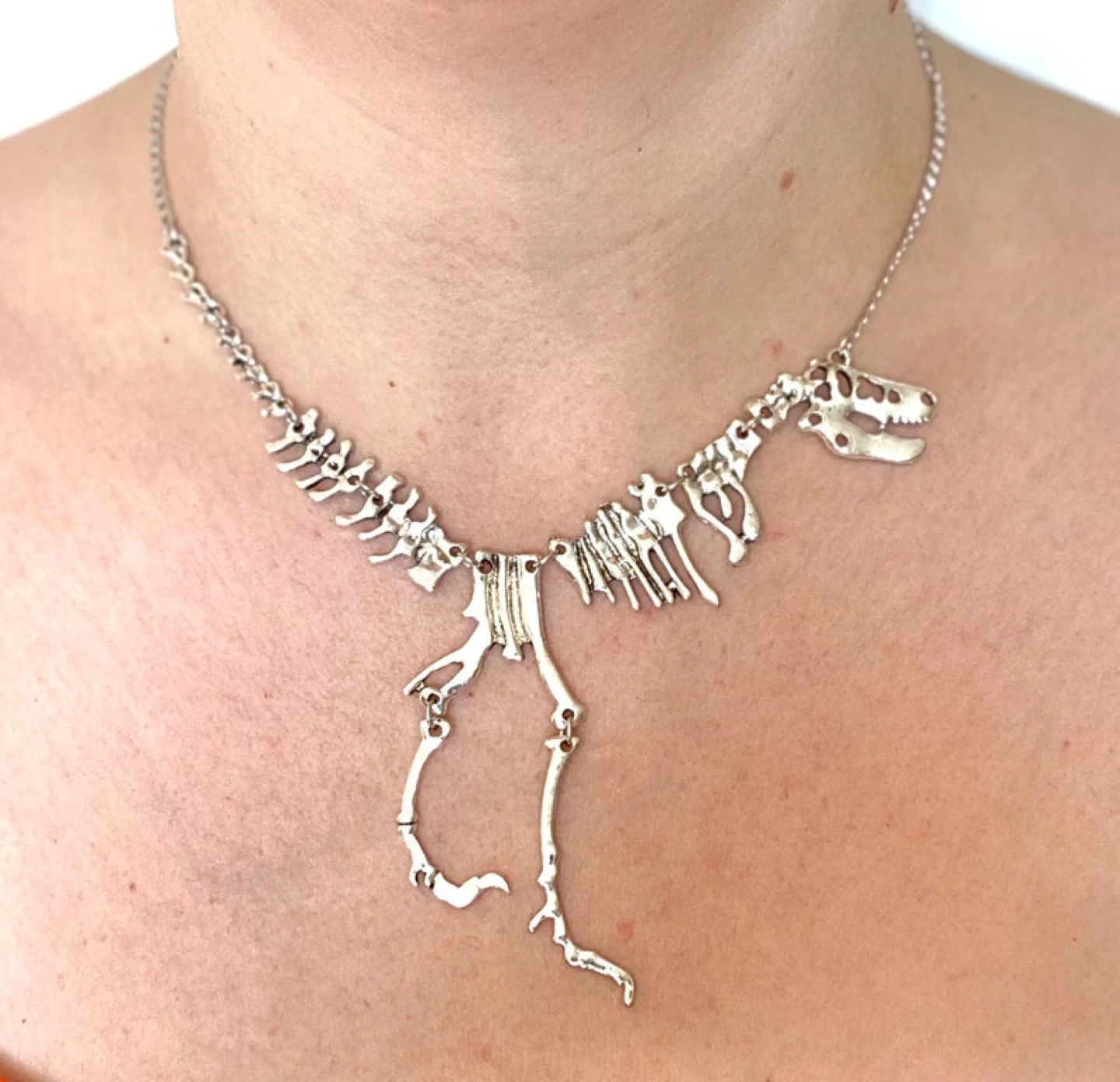 Buy & SellDinosaur Skeleton NecklaceDinosaur Skeleton Necklace$15Cool dinosaur skeleton pendant necklace. It's made of a silver-tone metal. Makes a fun statement piece!ConditionLike newWHERE TO MEETCheck LocationView MapSELLERIsaGlendale593 reviews0 chats·0 favorites·3 viewsSEND CHAT TO SELLERHi Isa! I’m interested in your listing.Hi Isa! I’m interested in your listing.Get the Karrot app to chatSign In to chat