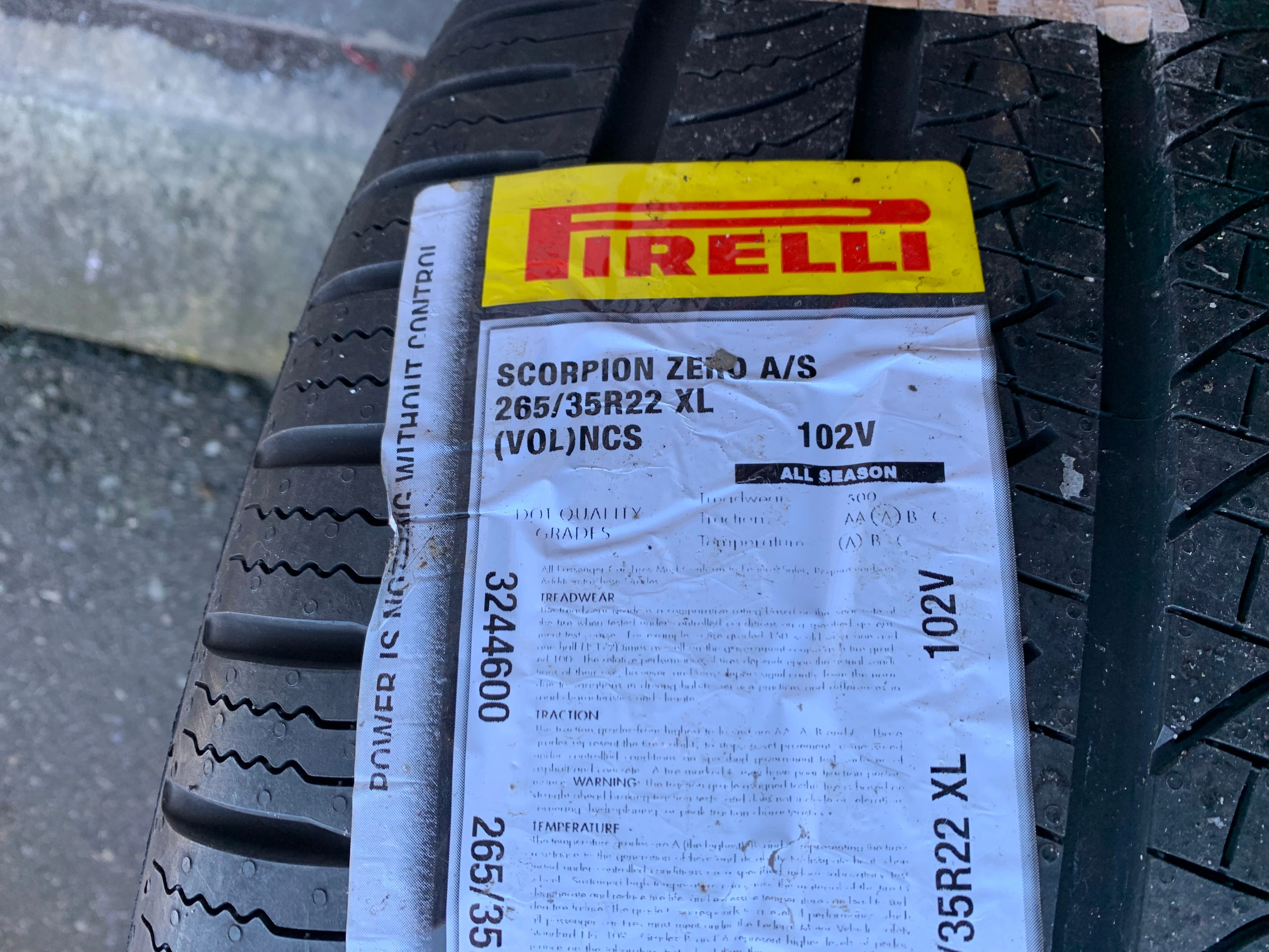 size 265/35/22 102V XL M+S Pirelli scorpion Zero A/S VOL Brand New with stickers