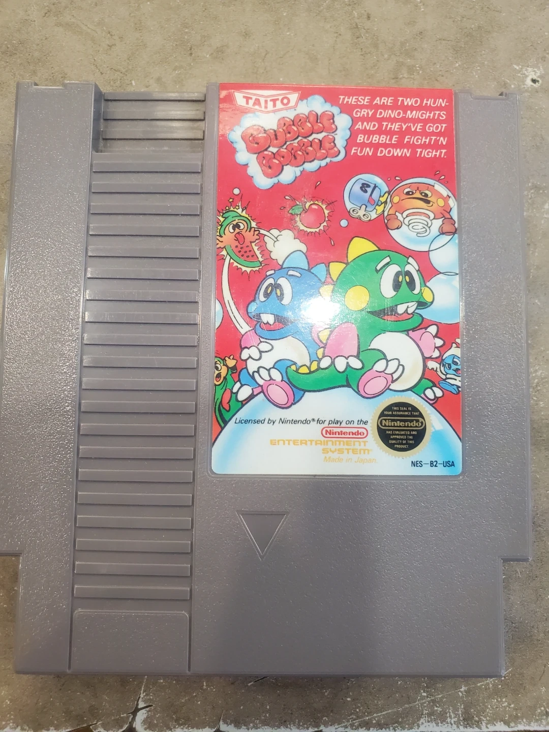 Buy & SellTaito Bubble Bobble NES GameTaito Bubble Bobble NES Game$40Bubble Bobble for the Nintendo Entertainment System. Classic game licensed by Nintendo. Made in Japan.ConditionGoodWHERE TO MEETCheck LocationView MapSELLERBSK AjaxPat Bayly Square110 reviews0 chats·0 favorites·5 viewsSEND CHAT TO SELLERHi BSK Ajax! I’m interested in your listing.Hi BSK Ajax! I’m interested in your listing.Get the Karrot app to chatSign In to chat