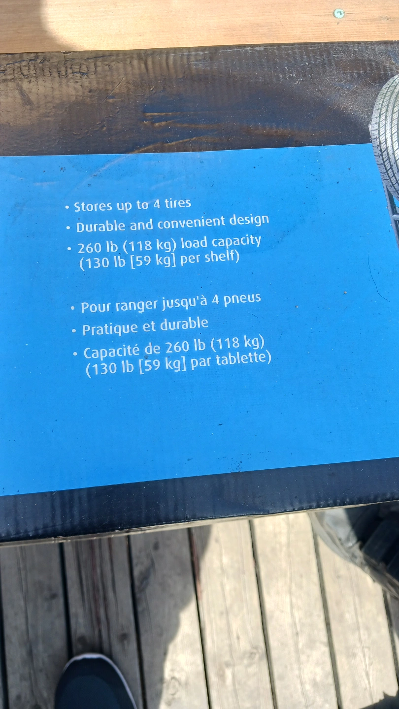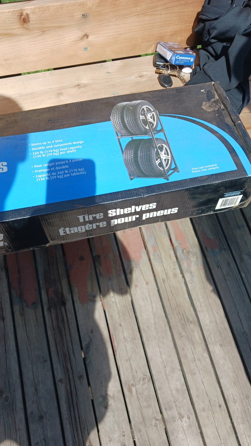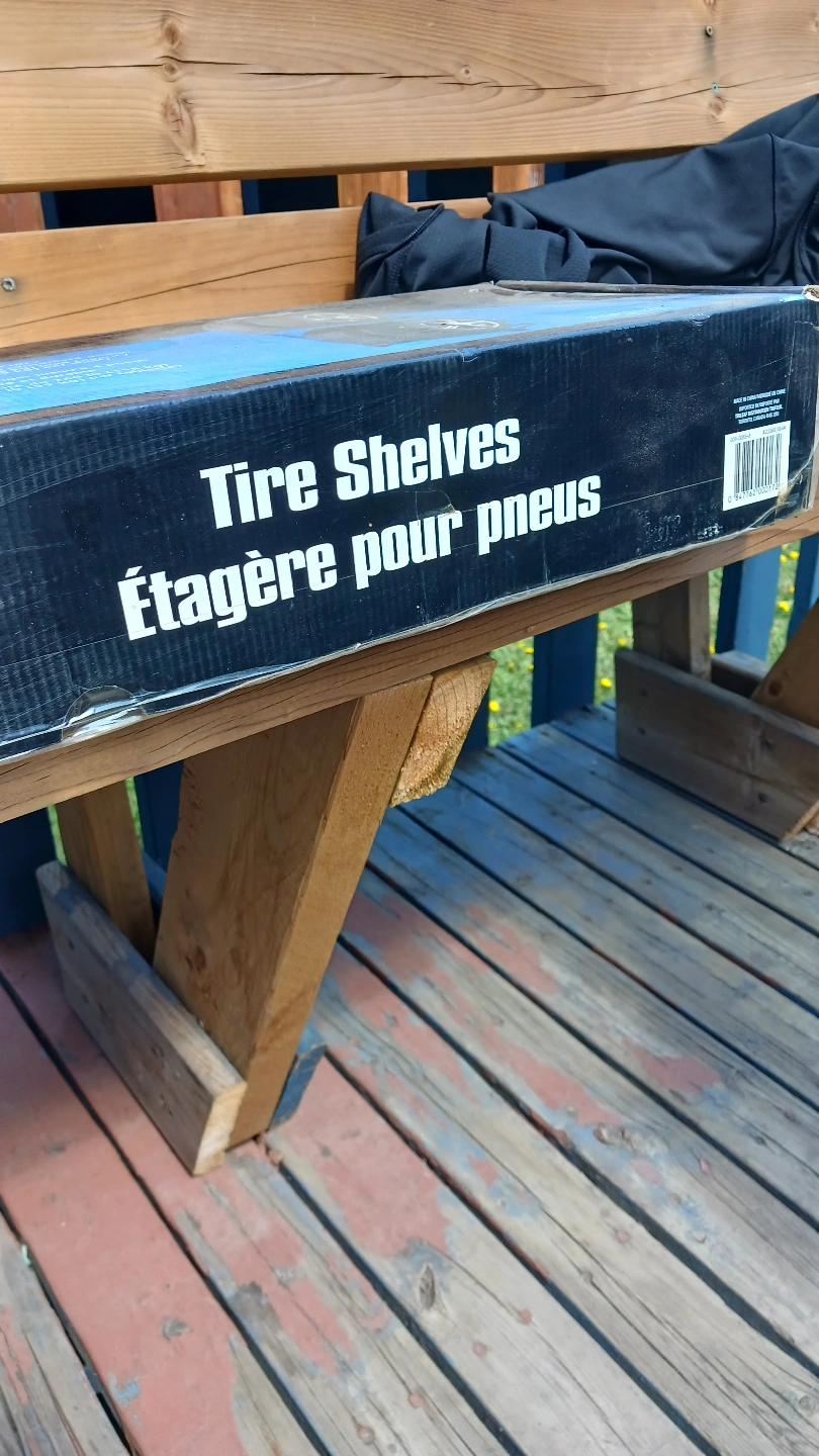 New tire shelves, holds up to 4 tires. Durable and convenient design. 260 lb (118 kg) load capacity per shelf. Great for storing seasonal tires.