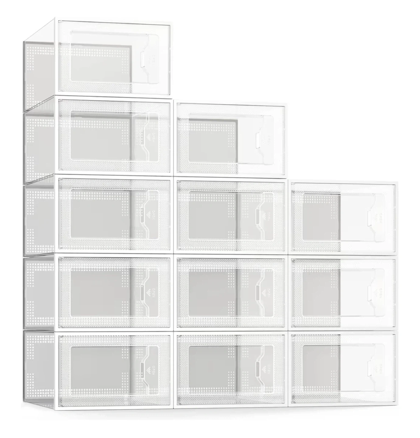 Selling a set of stackable shoe storage boxes. They are waterproof and easy to clean, perfect for keeping your shoes organized and protected. The box includes instructions for assembly + 12 individual size 9 Boxes. Get your shoes organized today!