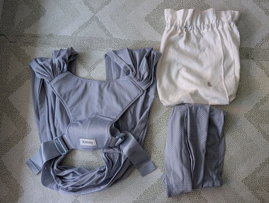 Konny Baby Carrier FLEX AirMesh in the pale blue colour size M. This carrier is lightweight and breathable, perfect for keeping your little one comfy.