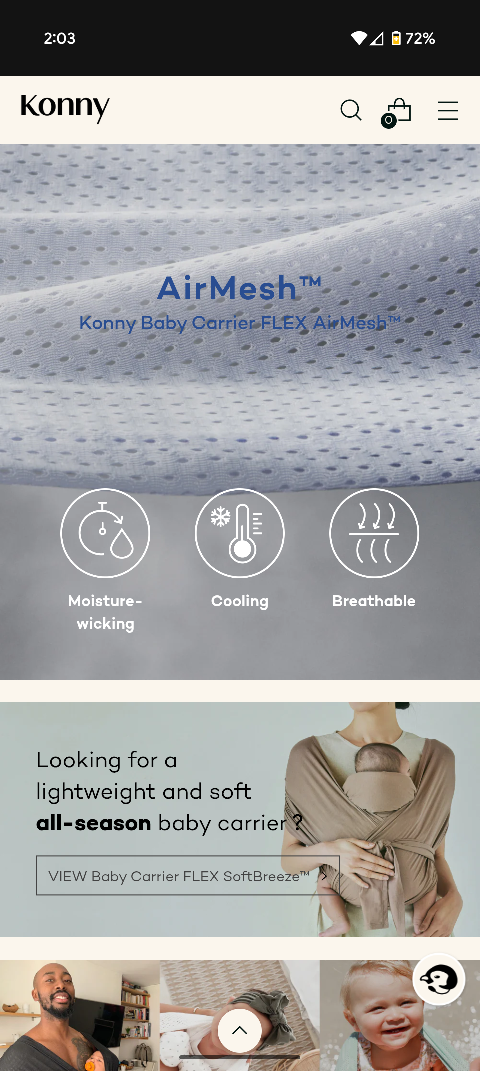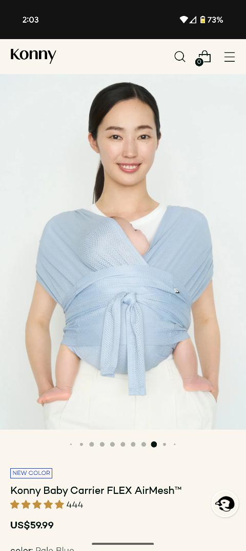 Konny Baby Carrier FLEX AirMesh in the pale blue colour size M. This carrier is lightweight and breathable, perfect for keeping your little one comfy.