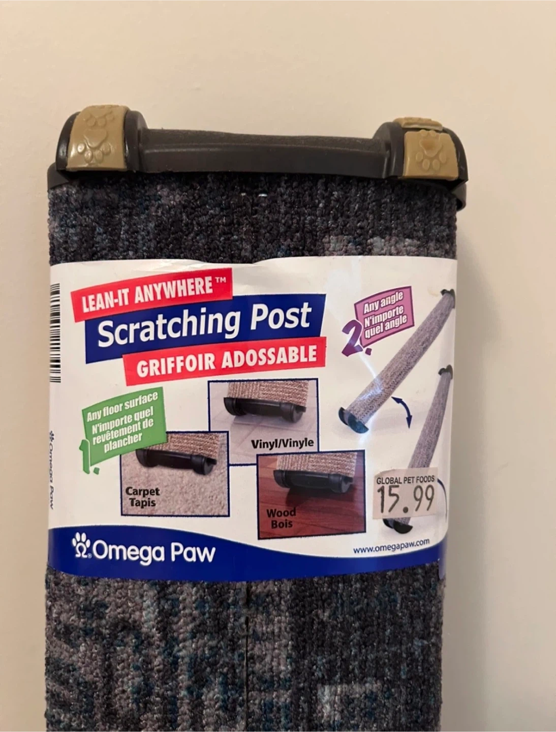 Omega Paw Lean-It Anywhere Scratching Post for cat! This scratching post can be leaned against any wall or surface. It works on carpet, vinyl, or wood flooring