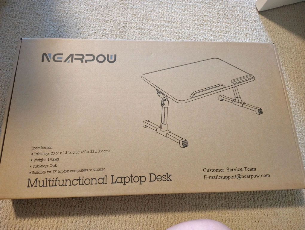 Selling a Nearpow multifunctional laptop desk! The tabletop measures 23.6" x 13" x 0.35" (60 x 33 x 0.9 cm) and it's suitable for 17" laptop computers or smaller. It's lightweight at 1.92kg. A great little desk! One item is missing but still good to go.