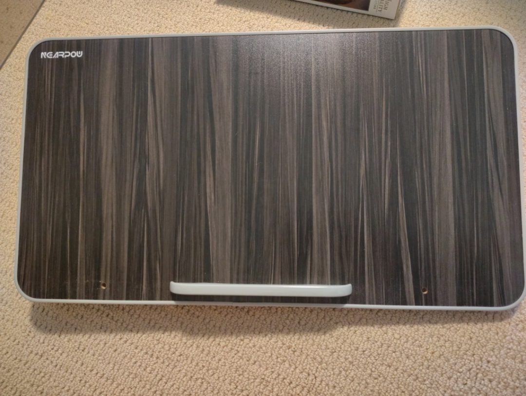 Selling a Nearpow multifunctional laptop desk! The tabletop measures 23.6" x 13" x 0.35" (60 x 33 x 0.9 cm) and it's suitable for 17" laptop computers or smaller. It's lightweight at 1.92kg. A great little desk! One item is missing but still good to go.