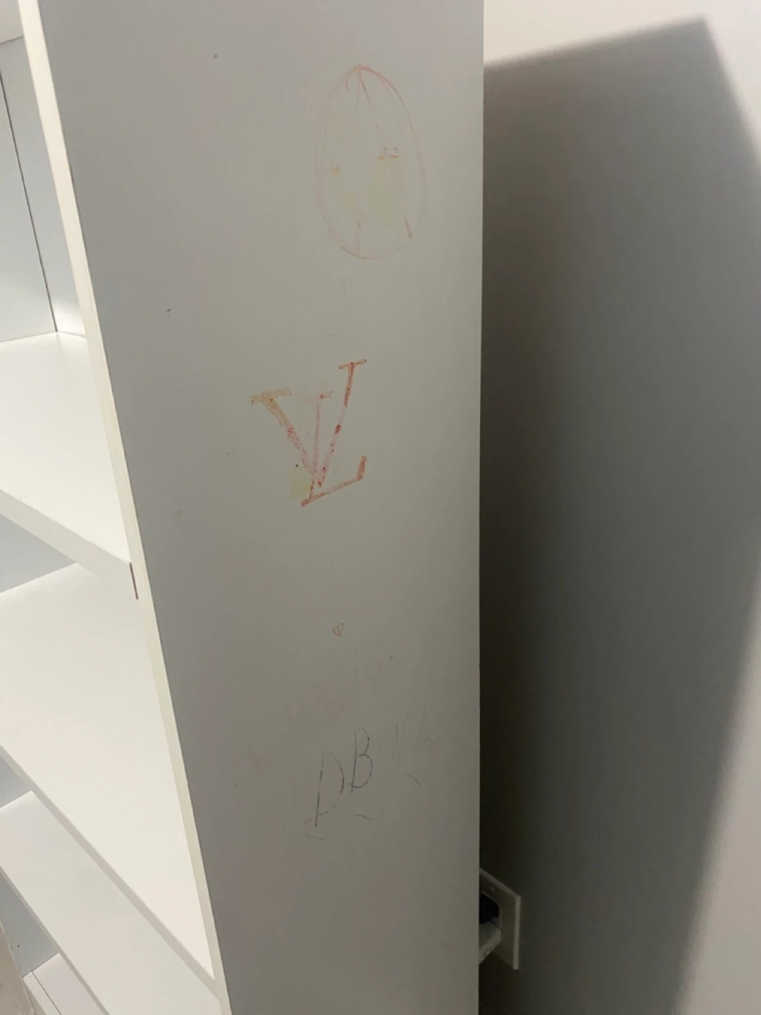 Selling a white bookcase. It has some wear and tear as shown in the pictures, but it's still a functional piece of furniture