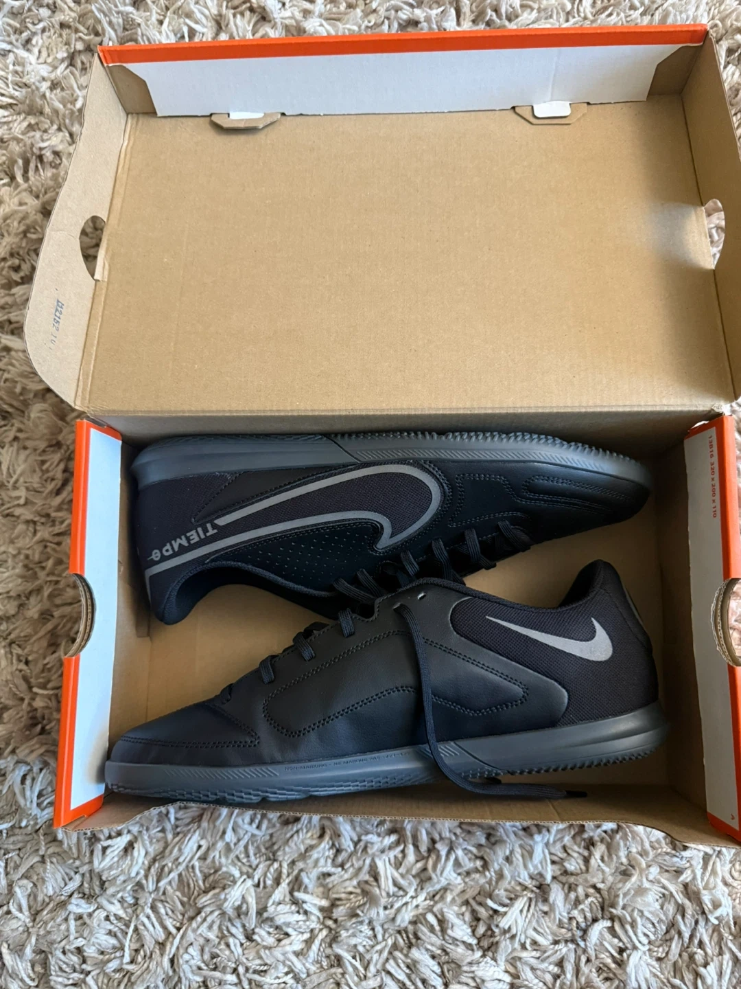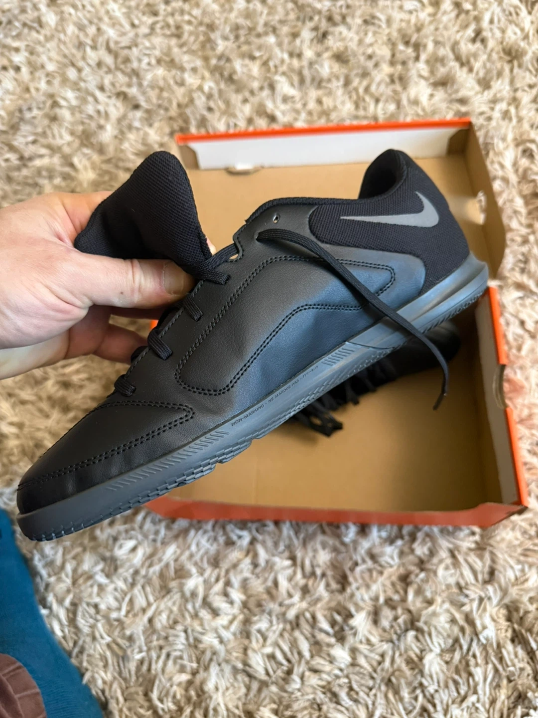 These are Nike Legend 9 Club IC indoor soccer shoes in black. Men's US size 12.5. Includes original box. Great for indoor soccer play!