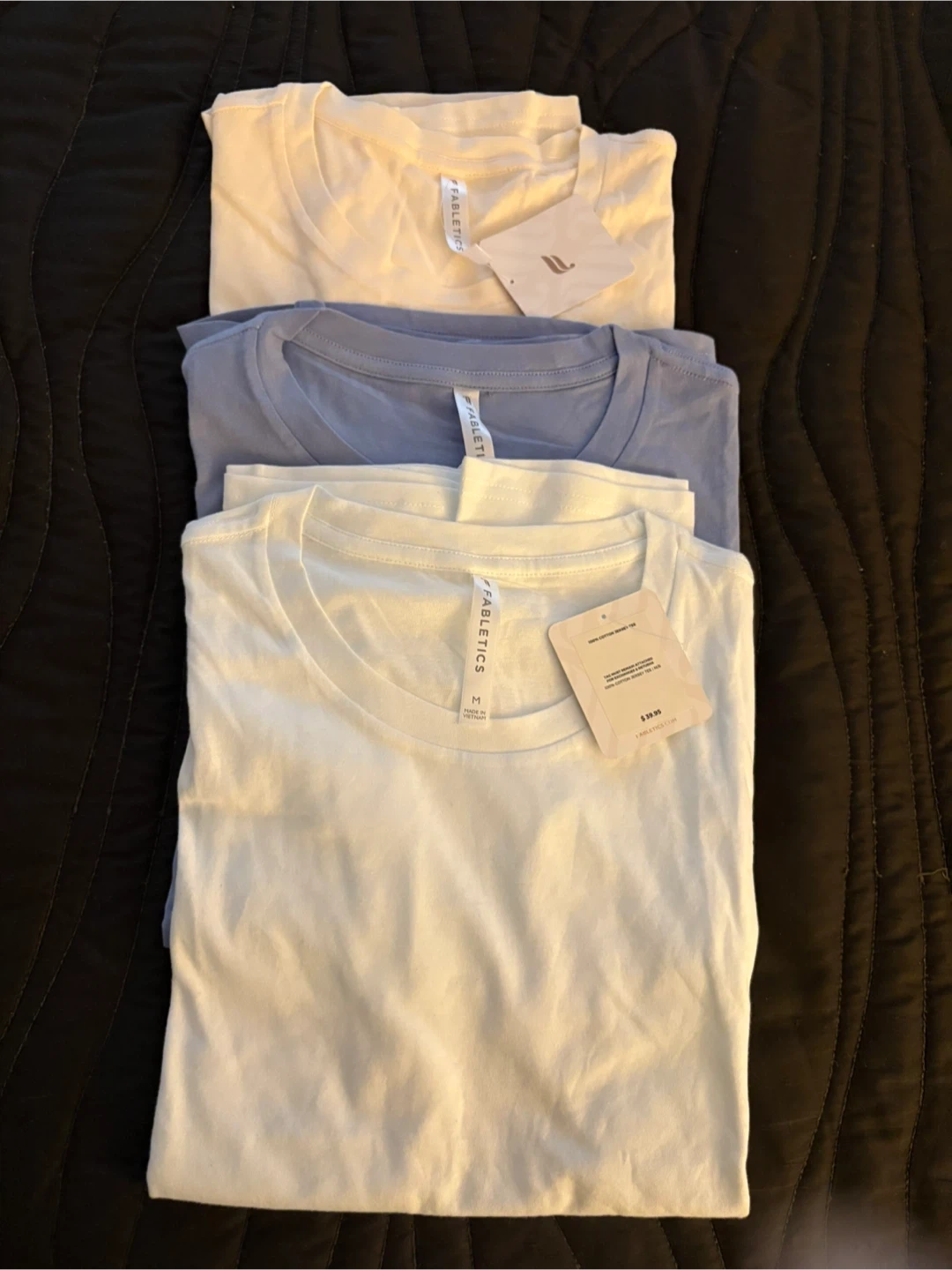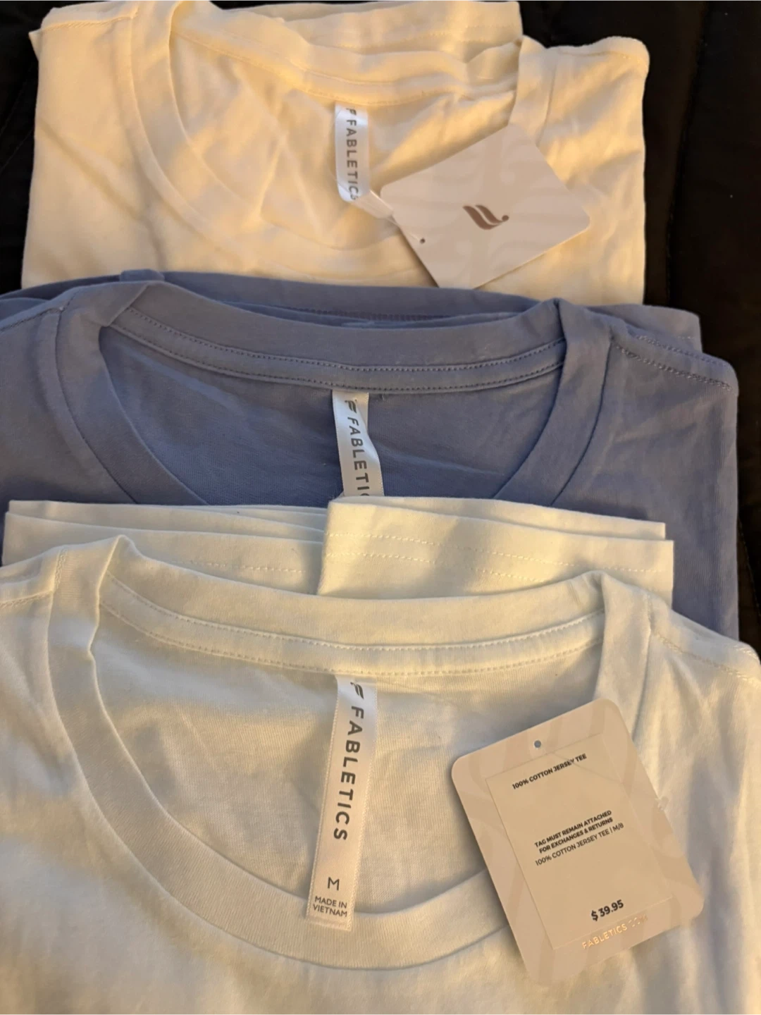 I have three brand new Fabletics t-shirts for sale, all size medium and never worn!