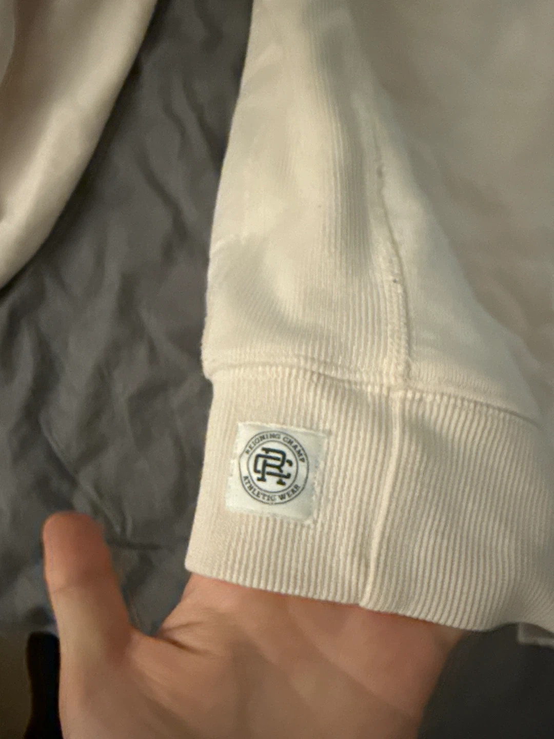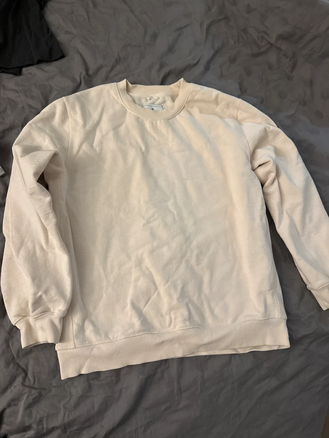 A classic cream crewneck sweatshirt from Reigning Champ. Crafted in Canada, it's a Men size large. I wear it foe oversize style. Made with durable materials for everyday wear.