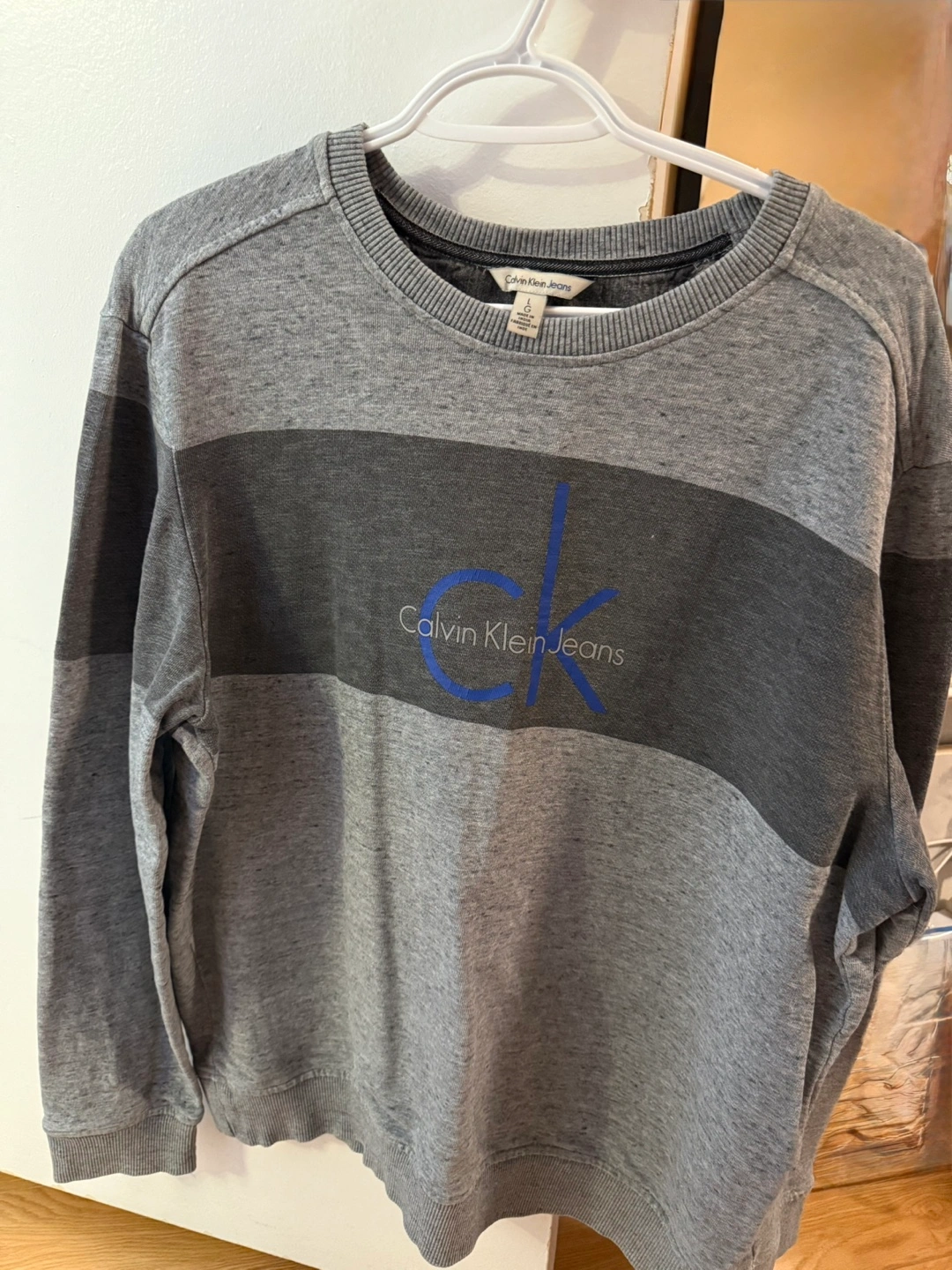 Men's grey sweatshirt. Features a Calvin Klein Jeans logo on the chest. Size Large. Perfect condition barely worn.