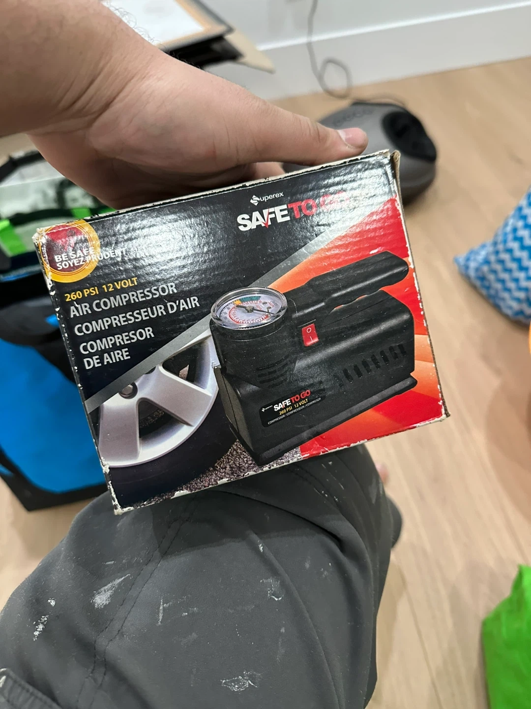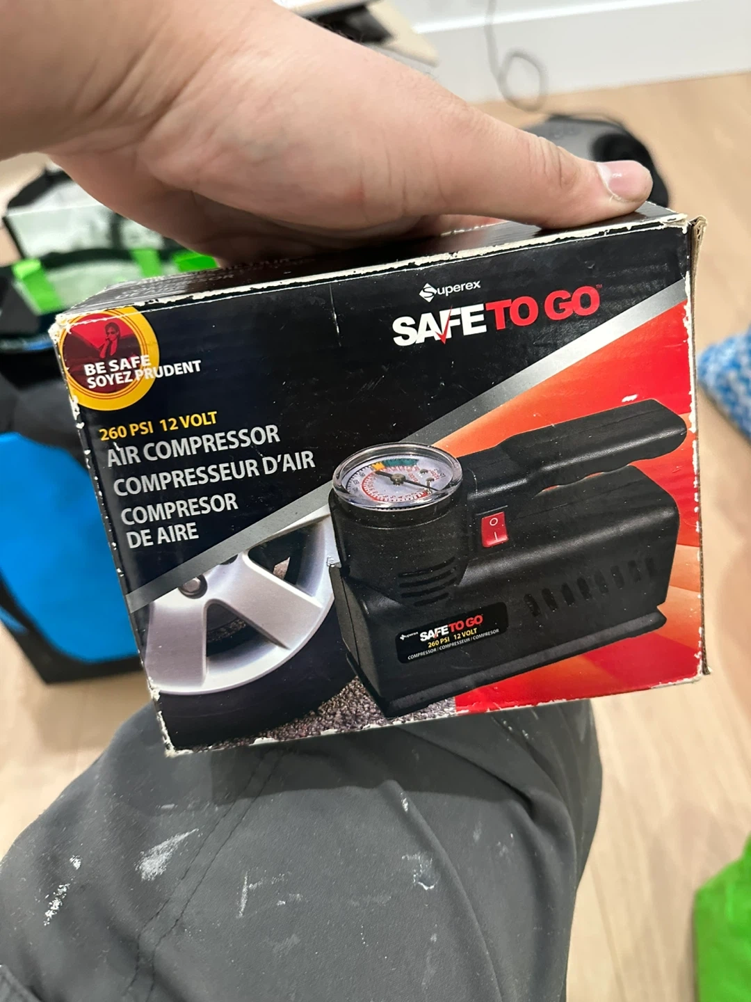 Selling a Superex Safe To Go 260 PSI 12 Volt Air Compressor. It comes with its original box. Great for inflating tires and other inflatables!