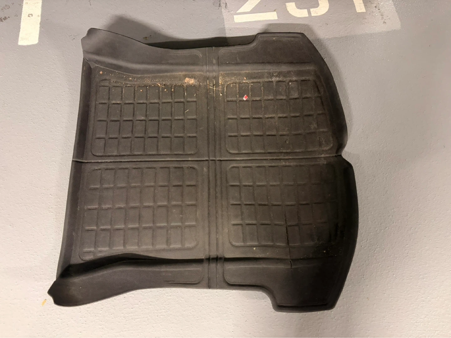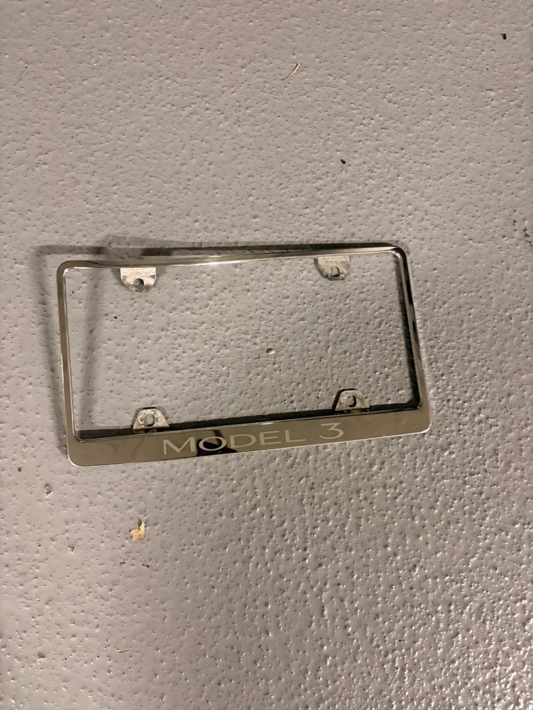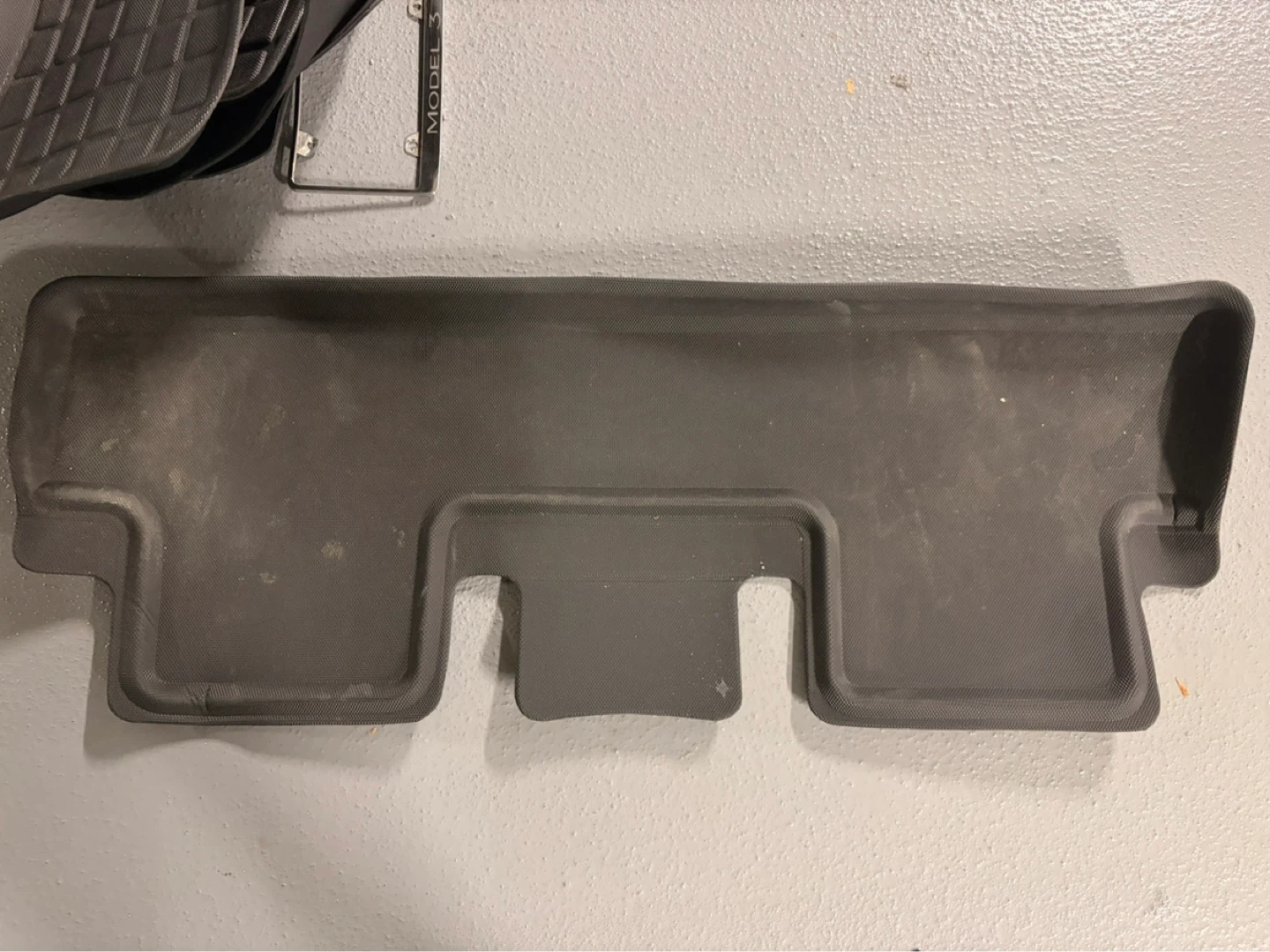 Set of all-weather floor mats for a Tesla Model 3, plus a Model 3 license plate frame. These are made of durable rubberized material to protect your car's interior. They help keep your car clean from dirt and spills!