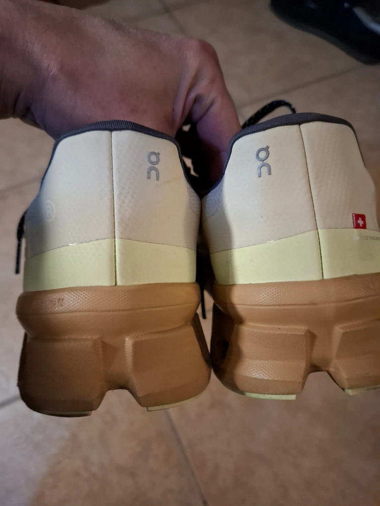 10Lightly used On Cloud 5 running shoes. Pale yellow and white colourway. Excellent cushioning. Great for various running surfaces. Minimal wear and tear.
