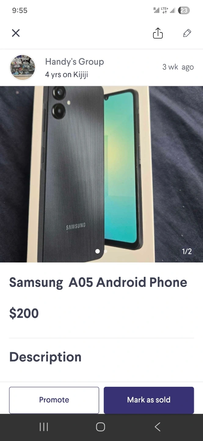 Buy & SellSamsung A05 Android PhoneSamsung A05 Android Phone$200This is a Samsung A05 Android Phone. It comes in black.ConditionNewBrandSamsungWHERE TO MEETwillowdaleView MapSELLERHandy VarietyWillowdale191 review0 chats·0 favorites·51 viewsSEND CHAT TO SELLERHi Handy Variety! I’m interested in your listing.Hi Handy Variety! I’m interested in your listing.Get the Karrot app to chatSign In to chat