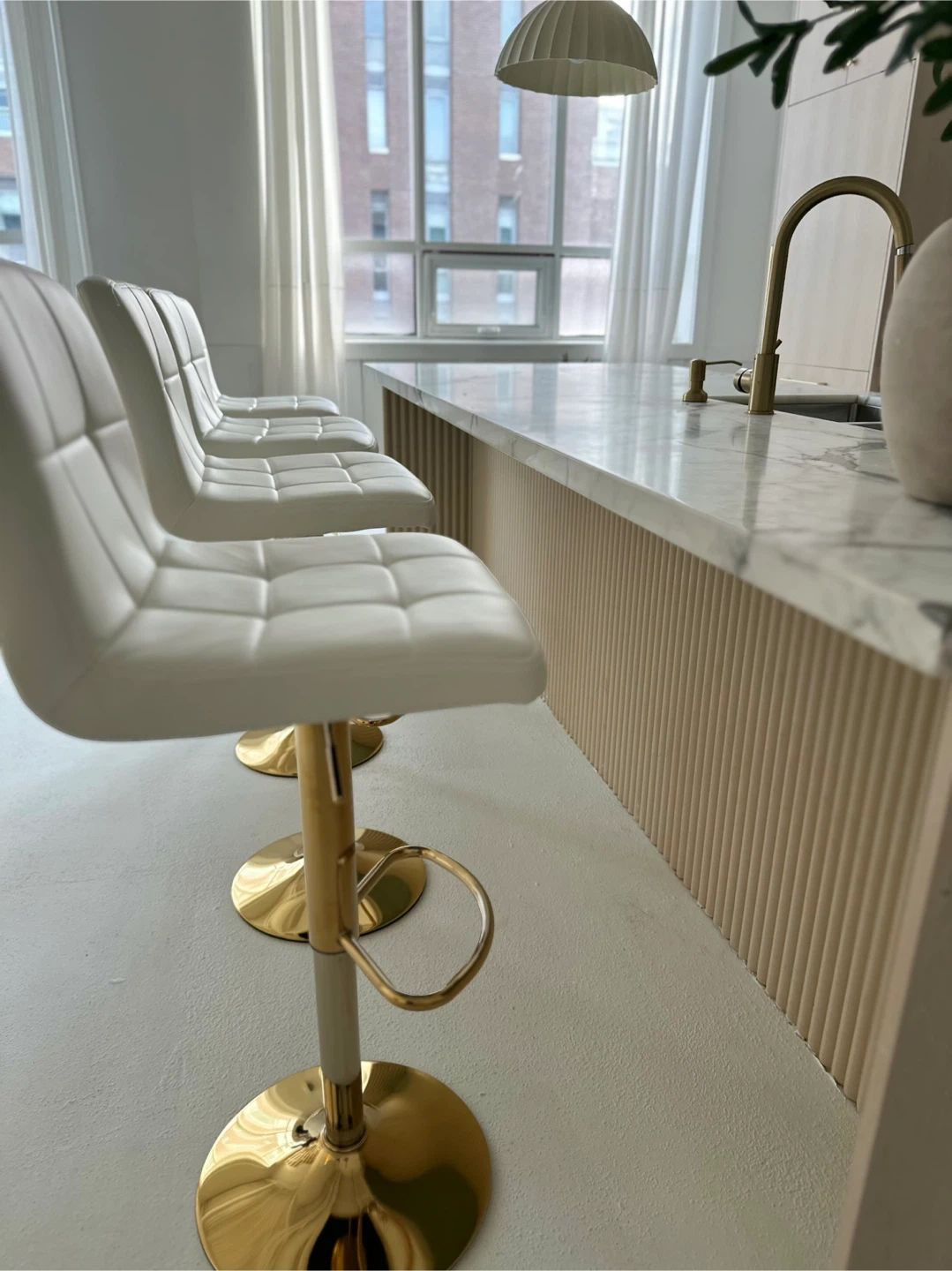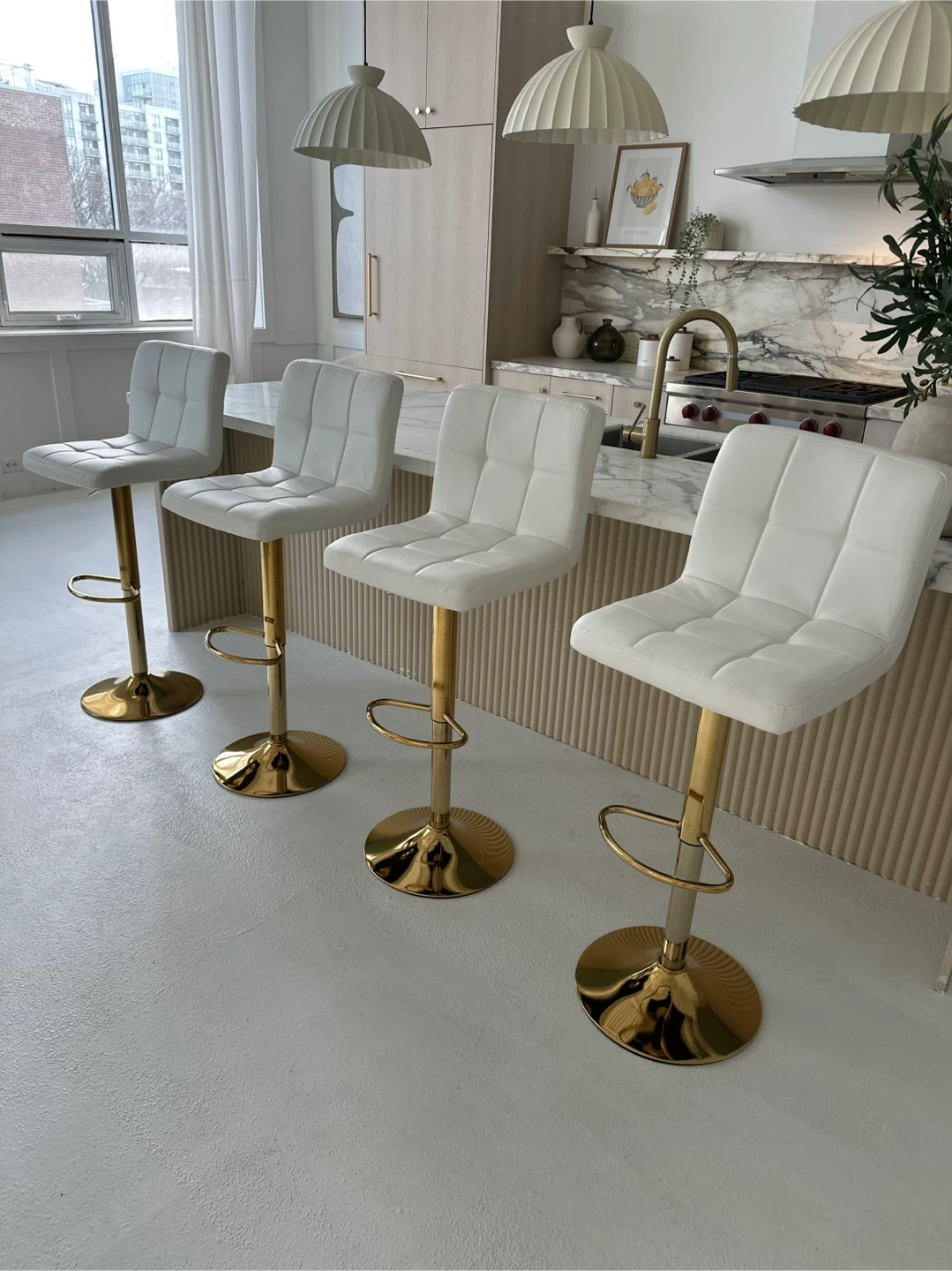 Selling brand new gold base bar stools asap. No space for them. They are new and only been used for staging pictures.