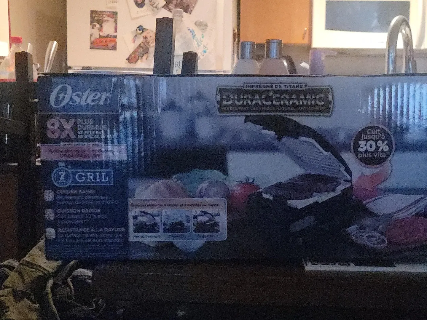 This Oster DuraCeramic indoor grill features a titanium-impregnated ceramic coating for 8x more durability and resistance to scratches. It cooks up to 30% faster. Includes 7 grilling functions. Perfect for quick meals indoors!