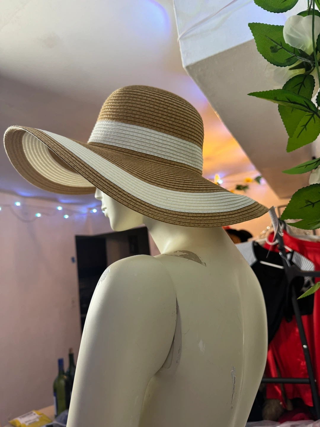 Straw sun hat with a classic woven design. Features wide brim for ample shade. Perfect for sunny days!