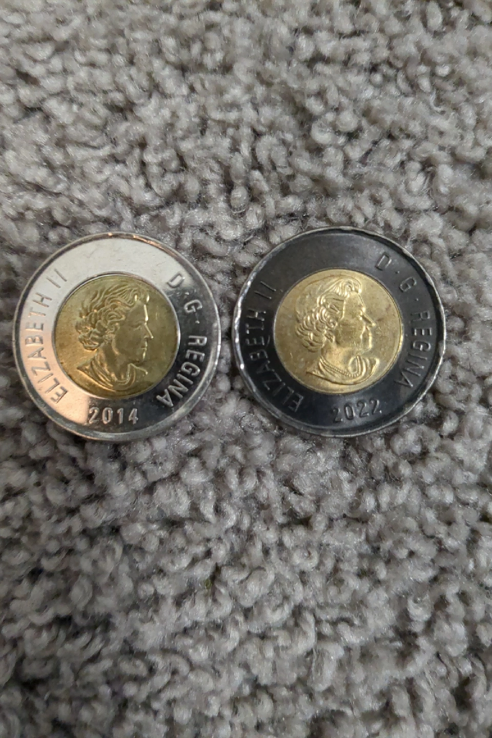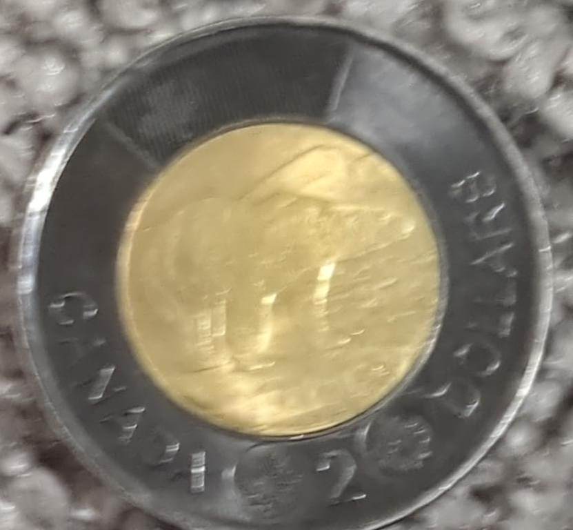 ONE black rim Canadian toonie. (Silver toonie is for comparison)