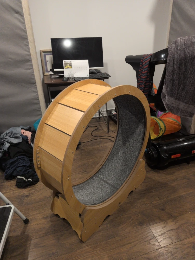 0Selling a brand new One Fast Cat exercise wheel. It's a great way to keep your indoor cat active and entertained! It has a smooth, large design that cats love