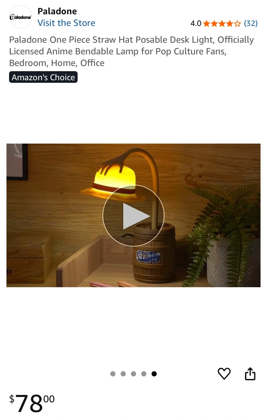 15I'm selling a brand new, in-box One Piece Straw Hat Posable Light! This fun lamp is shaped like Luffy's iconic straw hat and is fully posable. It contains a USB-powered light and instruction leaflet. The lamp is 27.5cm / 10.5" tall.
