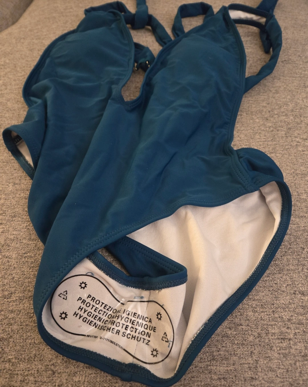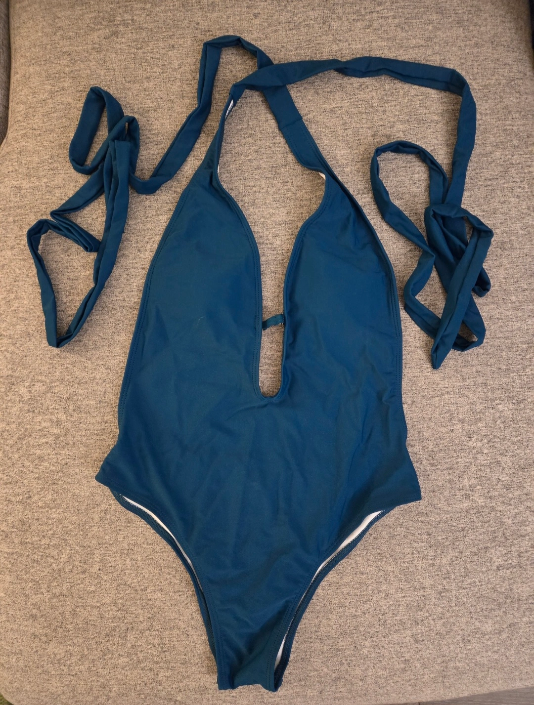 - Brand new, never worn! - Sexy plunging halter swimsuit - Size S (Bust: 33-35in, Waist: 26-27in, Hips: 36-37in)
