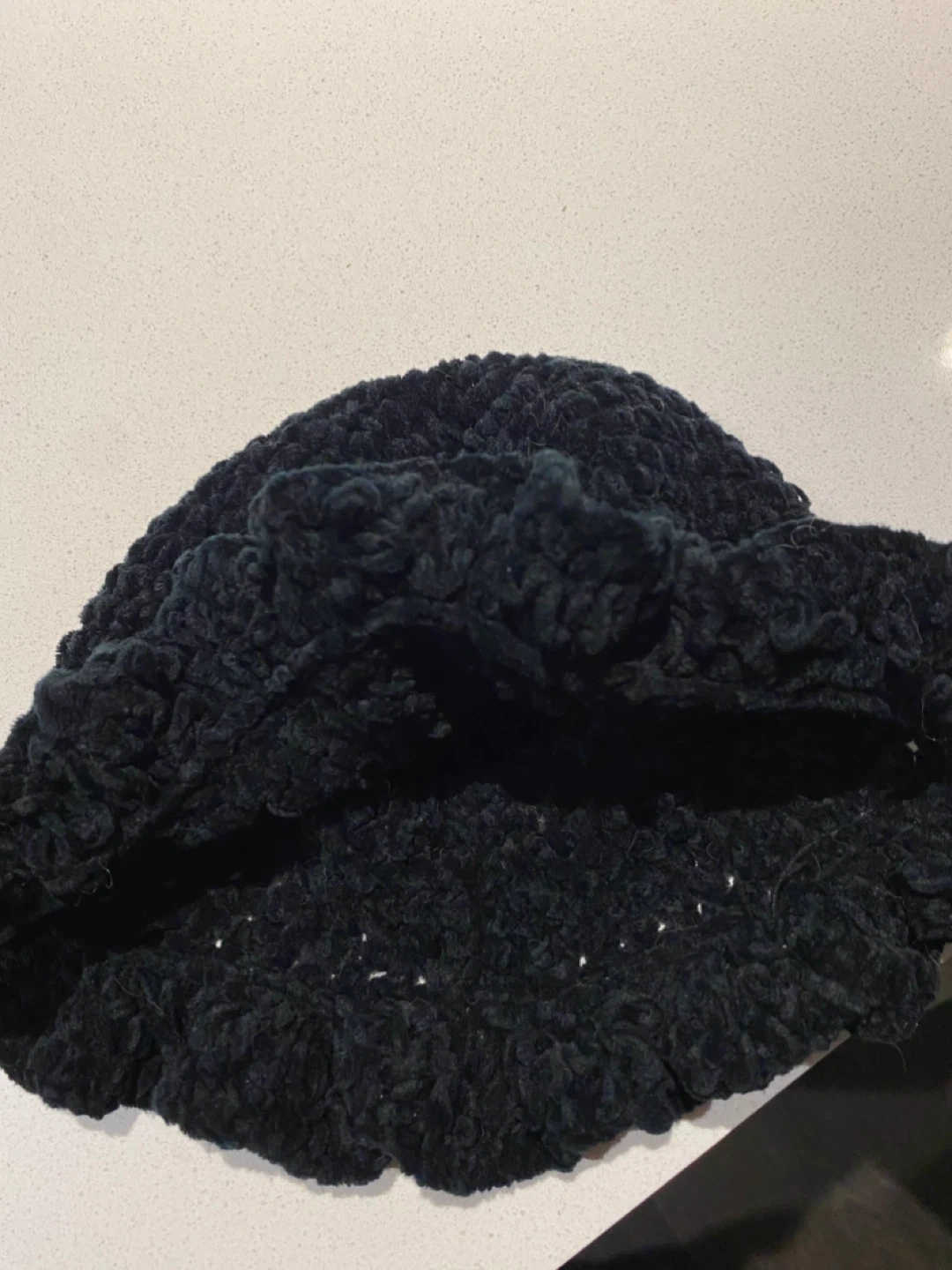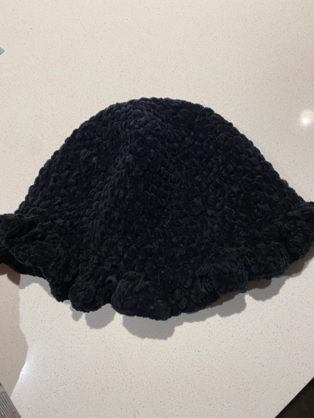 Selling a cute black crochet bucket hat! It's in great condition and has a nice ruffled brim. Perfect for adding a bit of style to any outfit!🧡