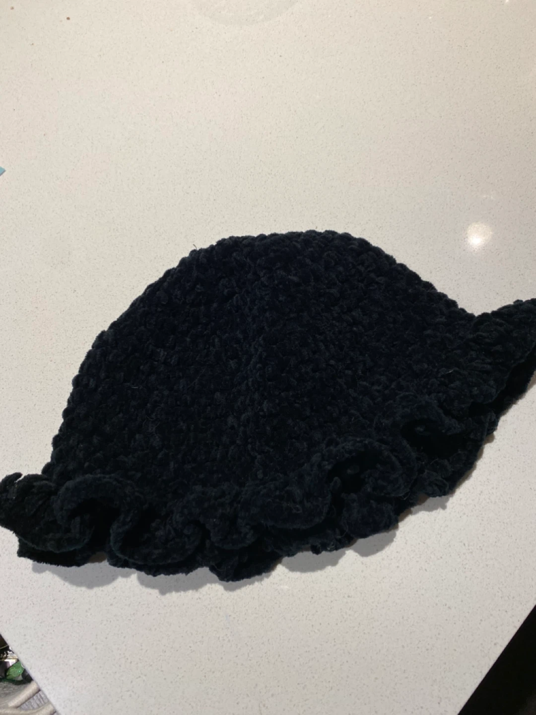 Selling a cute black crochet bucket hat! It's in great condition and has a nice ruffled brim. Perfect for adding a bit of style to any outfit!🧡