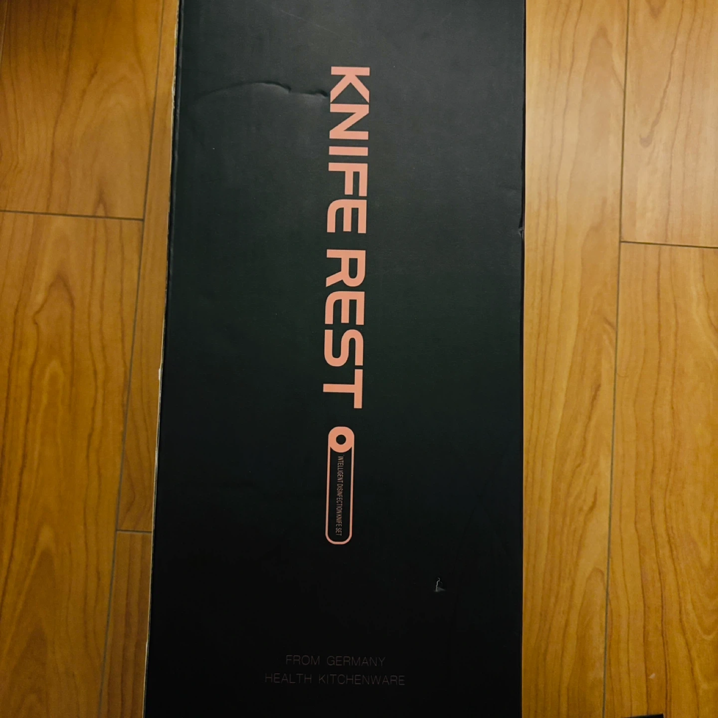 Selling a KITAJUN knife set, complete with a sterilizing knife block. It includes several knives and scissors, with sharpening stone. Japanese design - black with copper accents - from Germany. Block plugs in and disinfects knives!