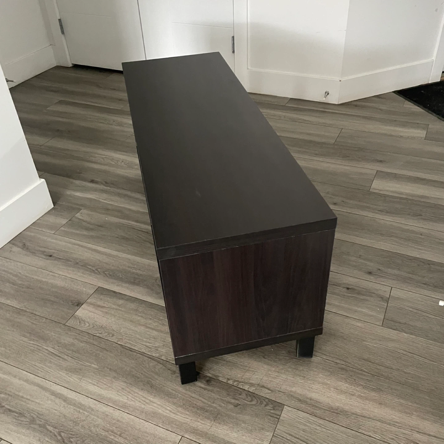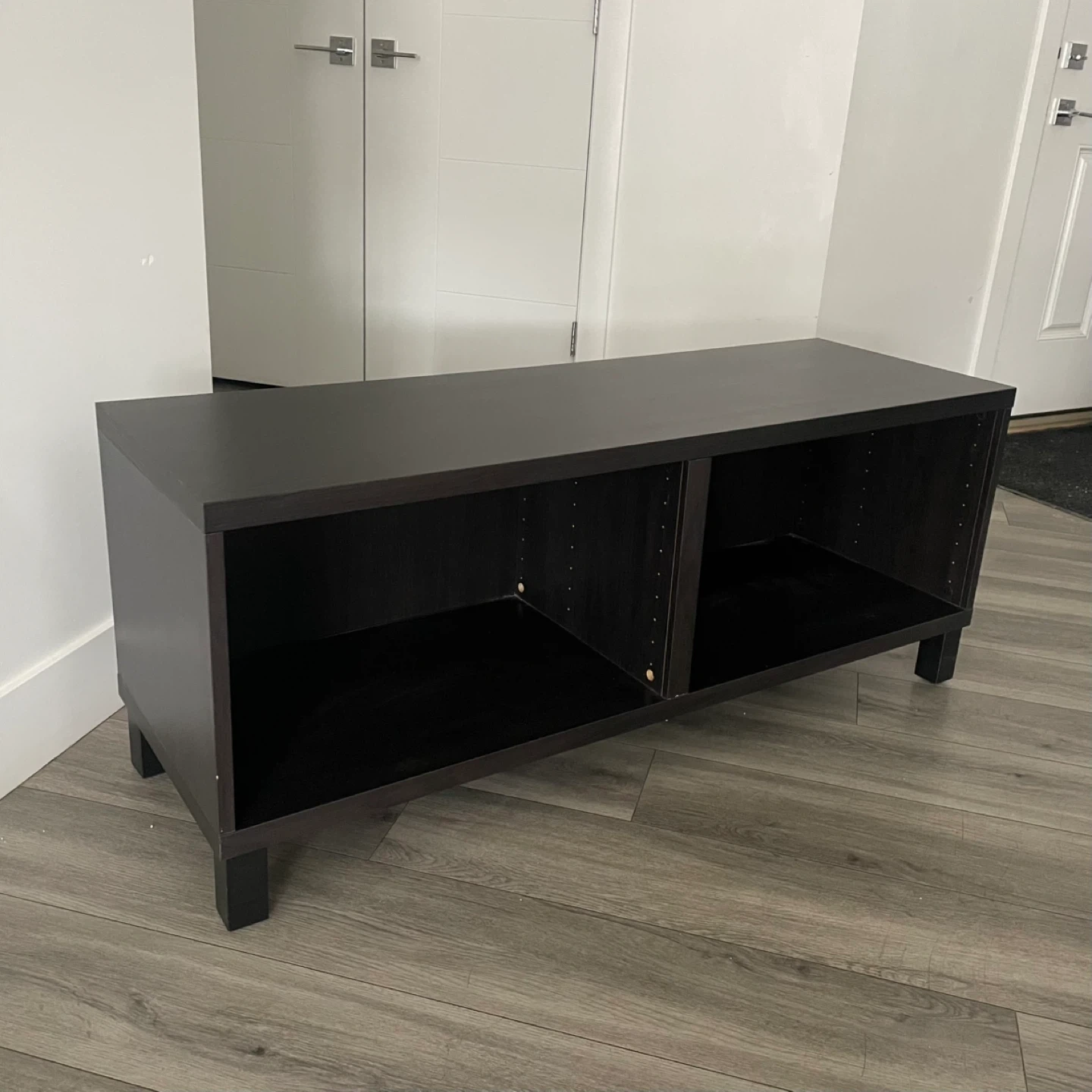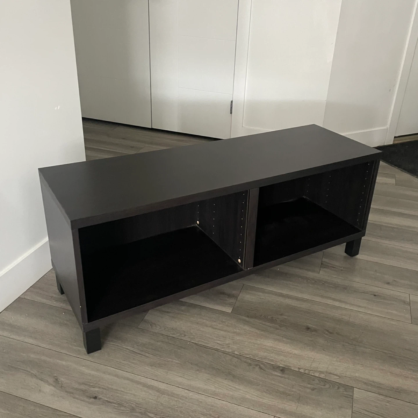 IKEA BESTÁ TV Bench, Black-Brown, In Good Condition Has Some Wear. Media Storage or Display Piece, Perfect For A Living Room.