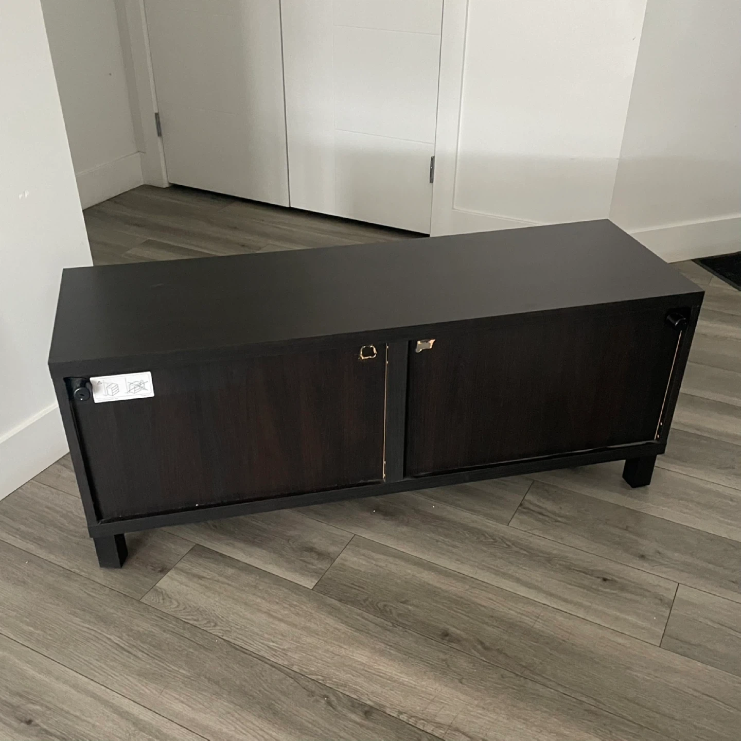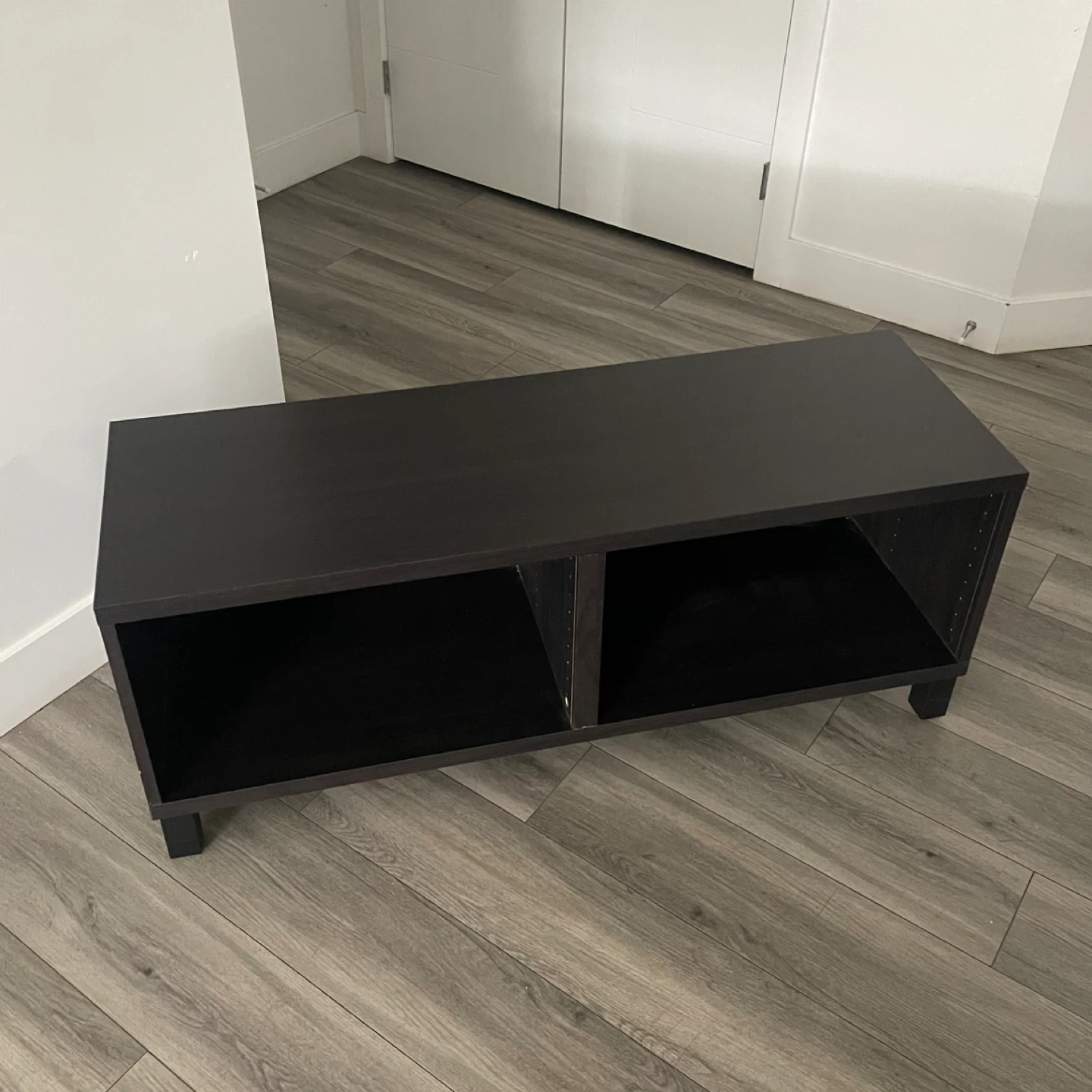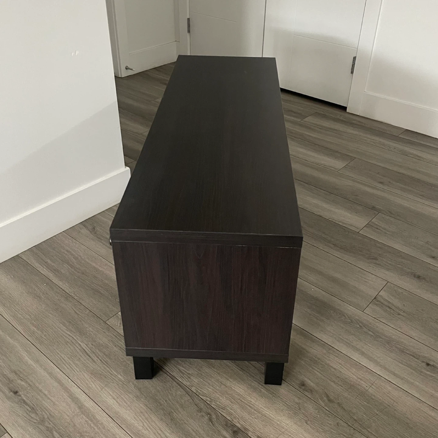 IKEA BESTÁ TV Bench, Black-Brown, In Good Condition Has Some Wear. Media Storage or Display Piece, Perfect For A Living Room.