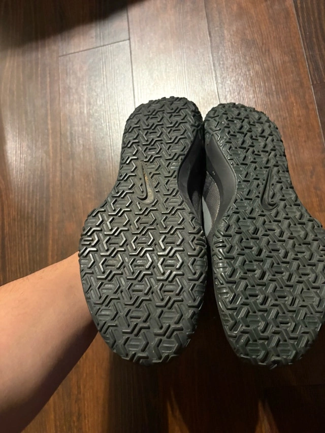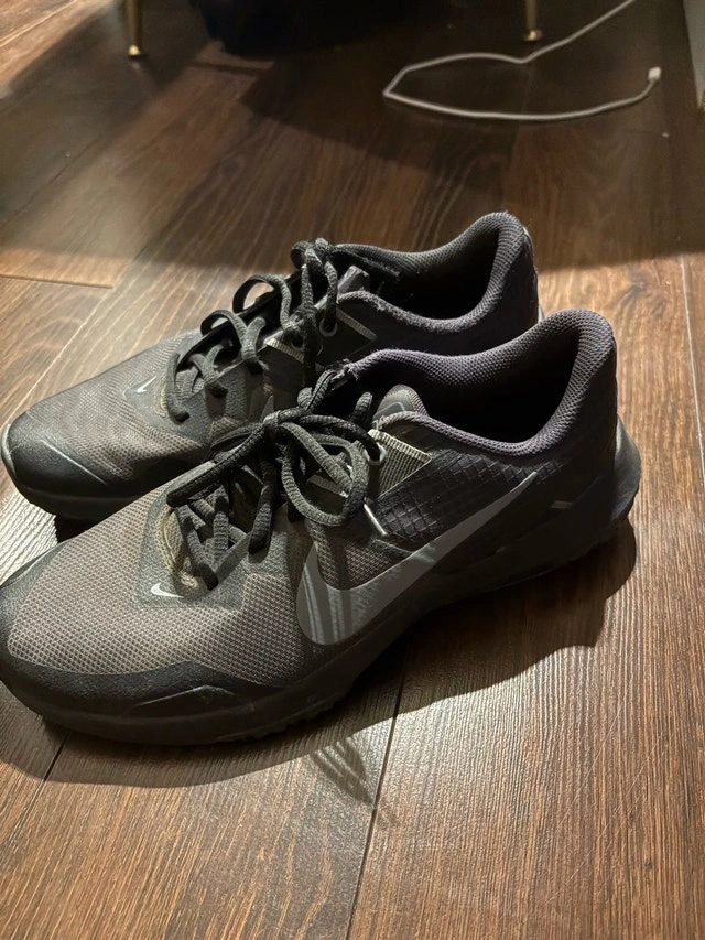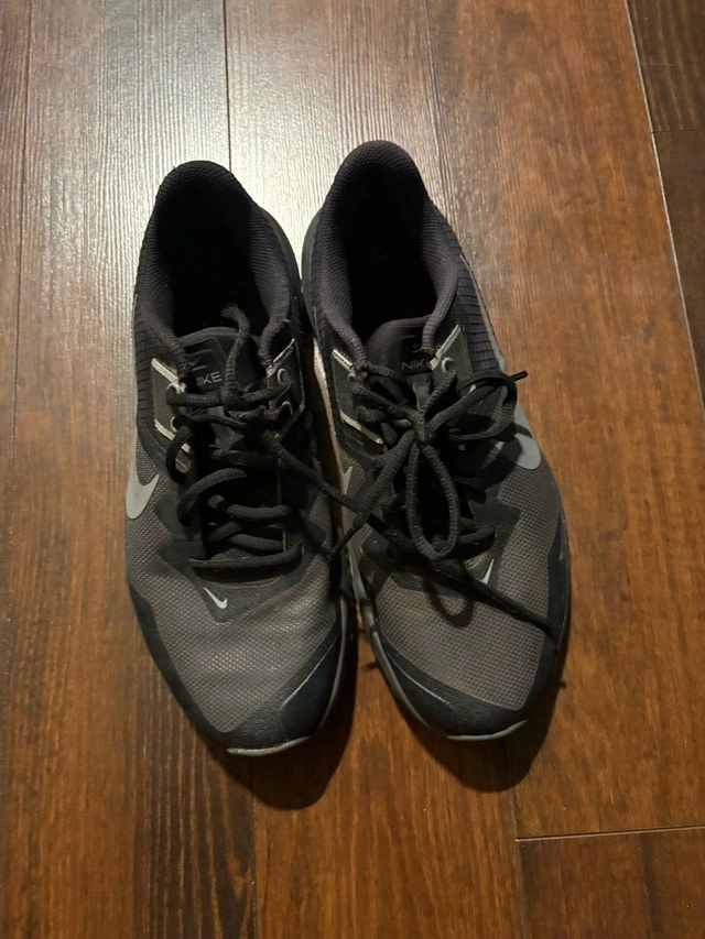 Get ready to hit the pavement with these Nike running shoes! They're in good condition, perfect for your daily jogs or intense workouts. These shoes have been my trusty companions, showing some signs of wear, but they still have plenty of miles left in them. Brand: Nike, Type: Running Shoes, Colour: Black/Grey, Condition: Good. Priced at $10. If you're seeing this ad, the shoes are still available!