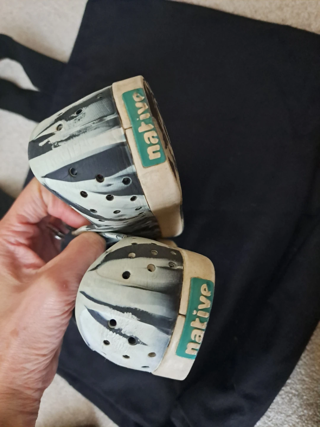 These Native shoes have a unique marbled black and white pattern. They're made from lightweight, durable EVA material. Waterproof and easy to clean, perfect for active kids!