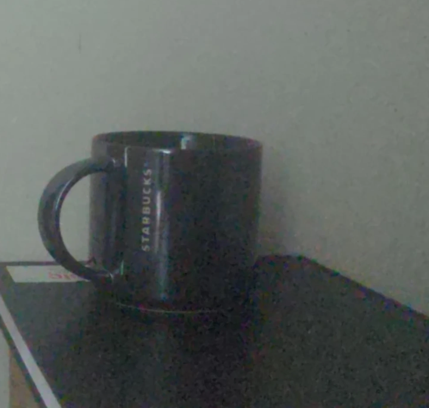 A Starbucks 2013 coffee mug with a laser etched spell-out logo. It's gunmetal gray with an iridescent finish. Dishwasher and microwave safe.