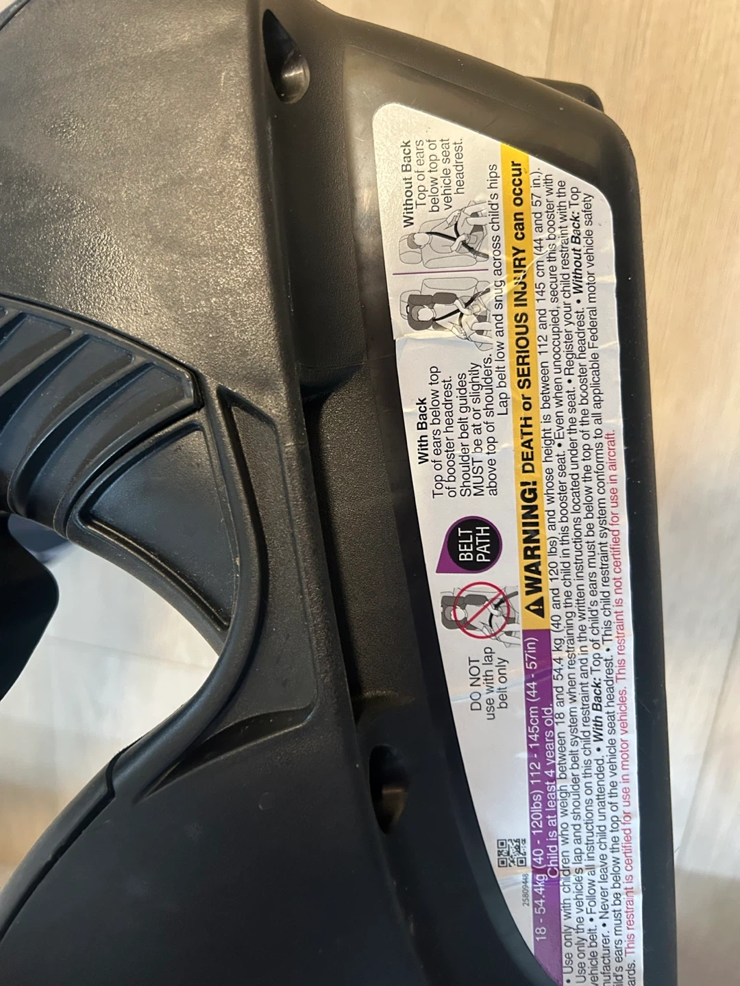 This Evenflo Go Time booster car seat is designed for children weighing 40 to 120 lbs and between 40 and 57 inches tall. It features a comfortable design with two cup holders. The seat expires in November 2028.