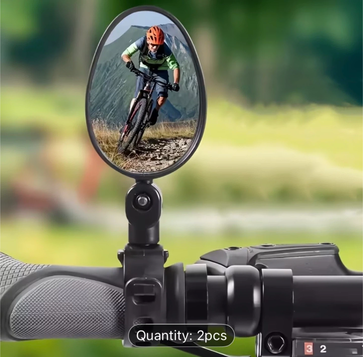 Set of 2 convex bicycle mirrors. Each mirror is 5cm wide and 7cm long. They offer 360° rotation for adjustable viewing. This mirror provides a clear and wide field of vision for a safer cycling experience.