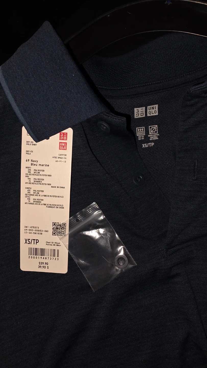Uni Qlo Athletic Polo Navy Blue Shirt XS๐