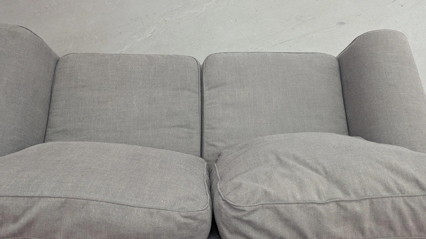 Grey Couch in solid condition. Came with a home with a cat so some hair but covers are machine washable