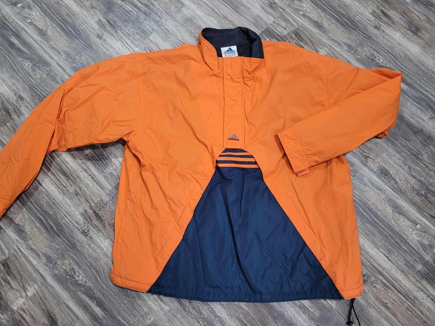 Vintage White Tag Adidas Navy & Orange Quarter Button & Zip Pullover Jacket Adult Size XXL - Chicago Bears Colors!! No rips tears or holes!!