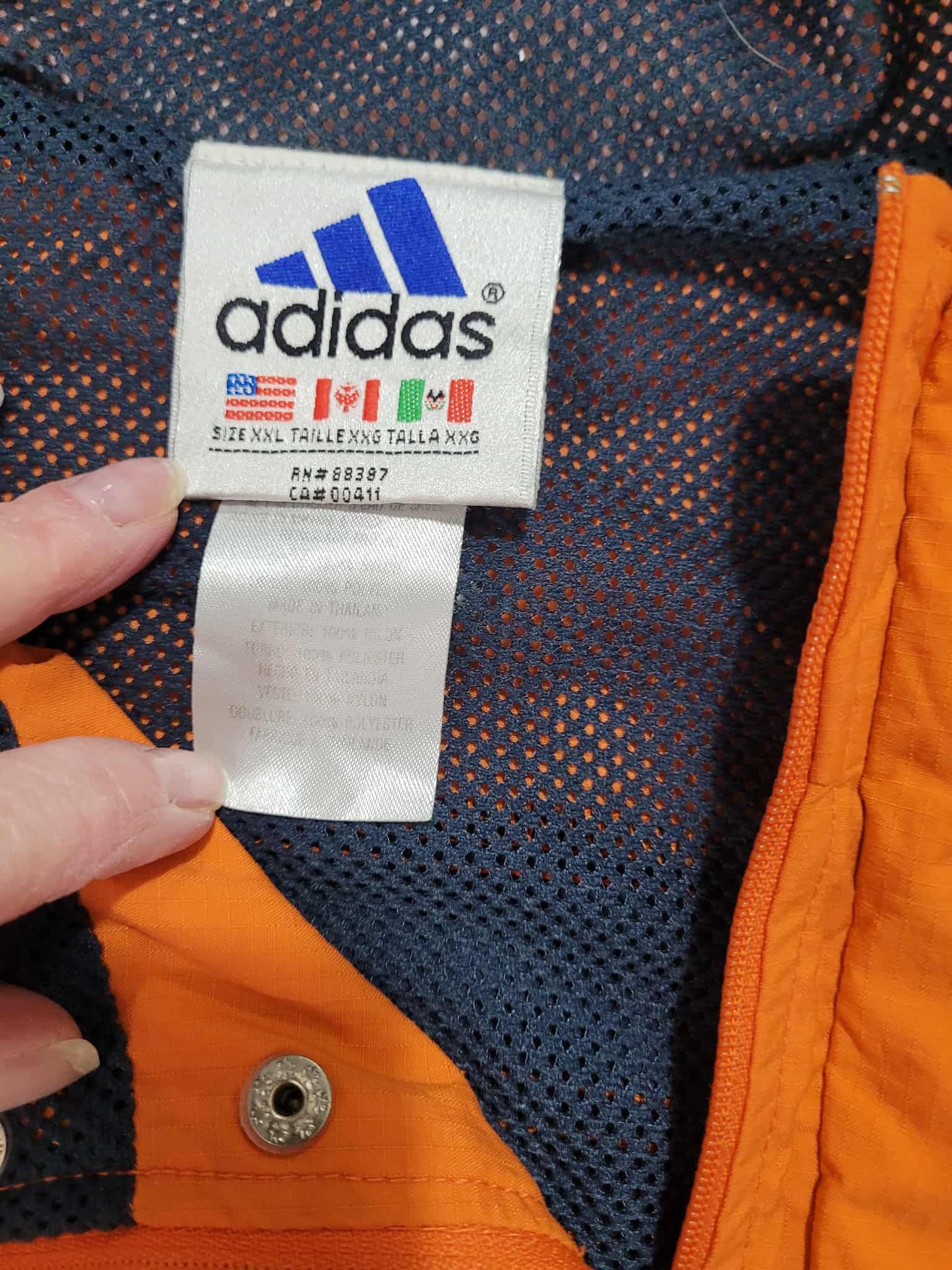 Vintage White Tag Adidas Navy & Orange Quarter Button & Zip Pullover Jacket Adult Size XXL - Chicago Bears Colors!! No rips tears or holes!!