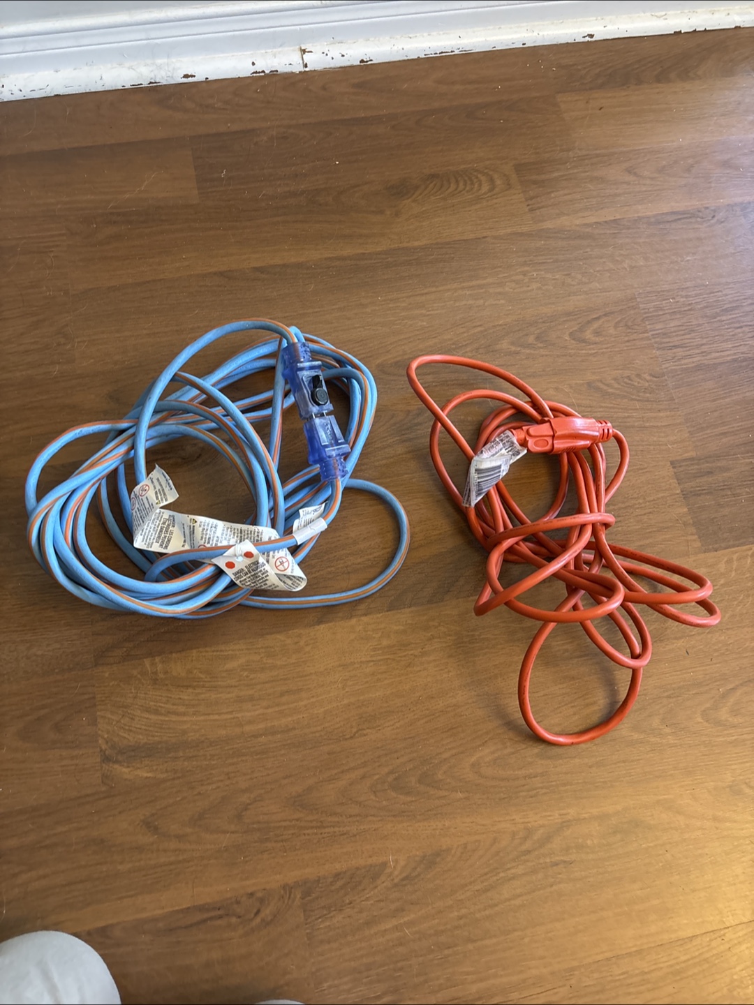 One brand new(orange) another heavy duty yard chord (blue) hardly used.