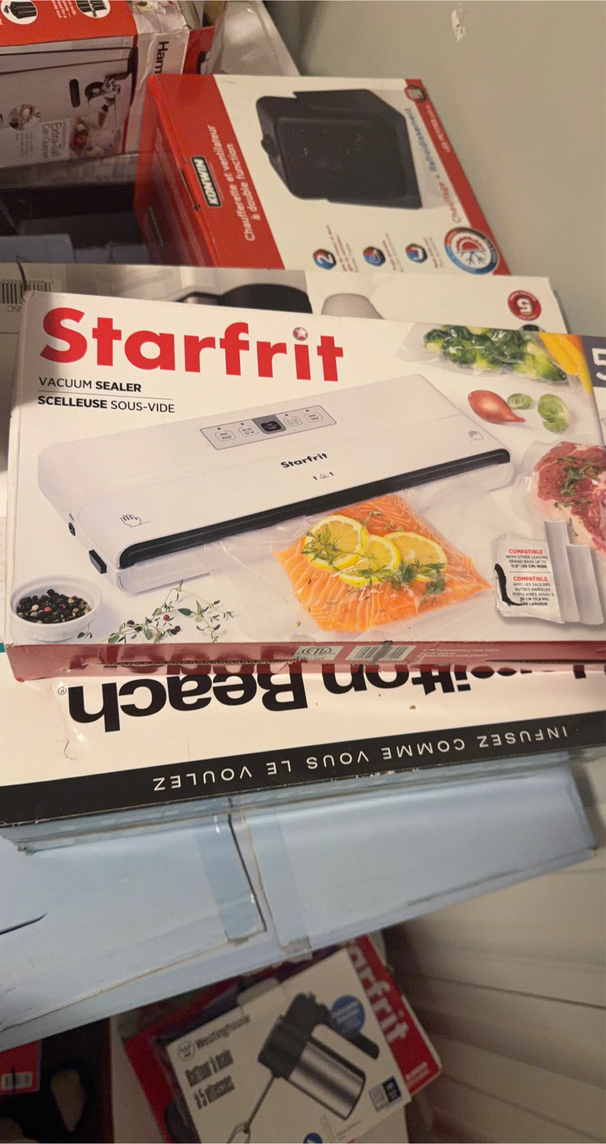 Starfrit vacuum sealer for preserving food. It's compatible with leading brand bags up to 11.8" (30 cm) wide. This appliance is great for keeping your food fresh longer.