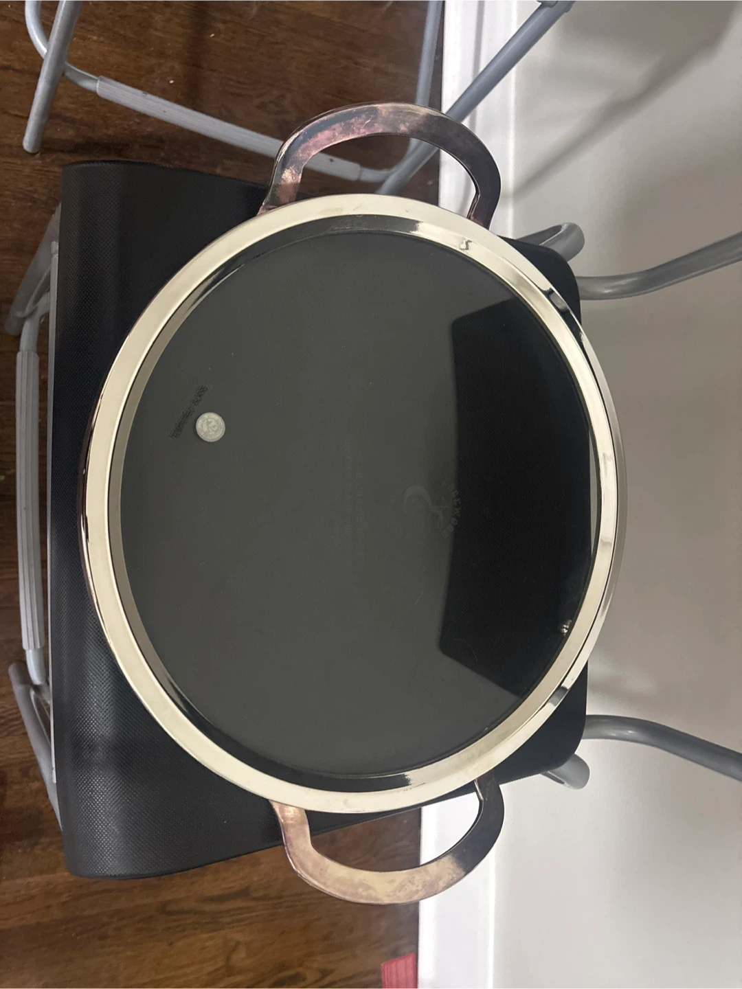 This is a round serving tray with silver-tone handles and a glass insert. Its polished rim adds a touch of elegance. Perfect for serving appetizers or displaying items.