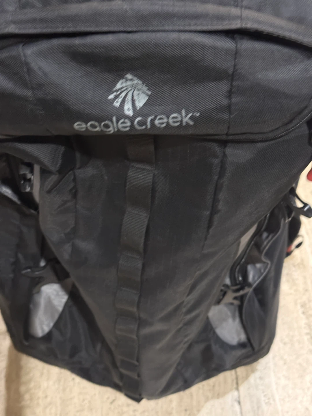Eagle Creek rolling duffel bag in black. It features durable construction and smooth-rolling wheels for easy transport. This bag is perfect for trips requiring substantial packing space.