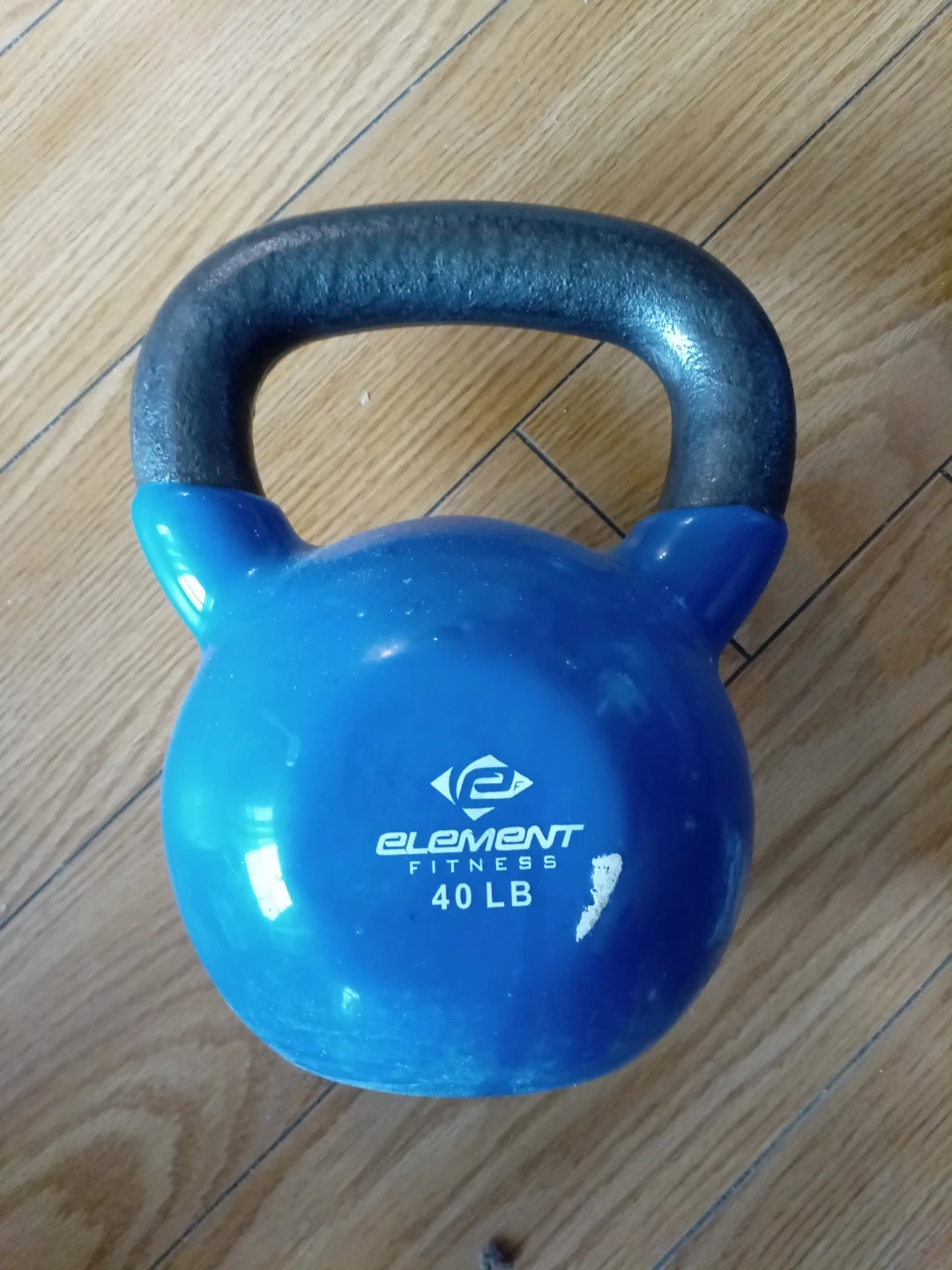 Buy & SellElement Fitness 40 LB KettlebellElement Fitness 40 LB Kettlebell$45Element Fitness kettlebell weighing 40 LB. It's blue with a cast iron handle. Good for strength training.WHERE TO MEETYonge Sheppard CentreView MapSELLERverifiedBill TomensonWestgate650 reviews0 chats·4 favorites·14 viewsSEND CHAT TO SELLERHi Bill Tomenson! I’m interested in your listing.Hi Bill Tomenson! I’m interested in your listing.Get the Karrot app to chatSign In to chat