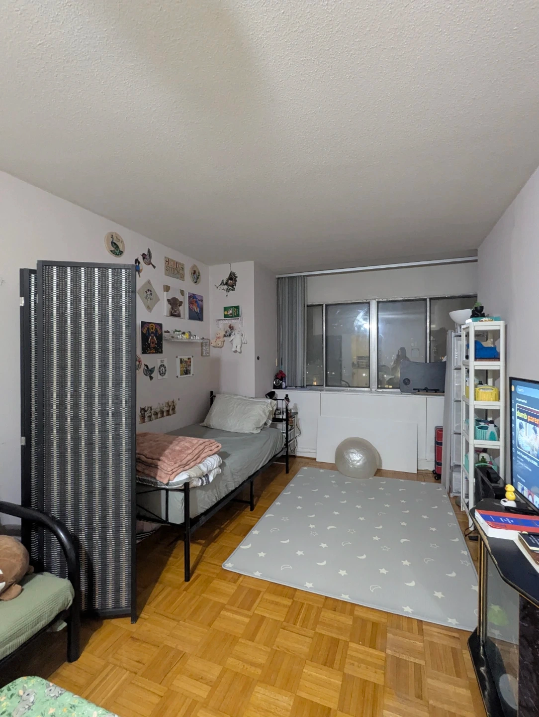 I am looking for one person strictly non smoker male / female or couple for short term. It's for two months March and April. No Parking available. This living room or den is really good and furnished with seperate closet. We have a family-like environment and shared with office going couple (they live in the seperate bedroom).. All the grocery, clothing stores and banks are within 5 minutes walk. The location is super convenient and the room is cozy. Please msg me if you are interested. Thank you π