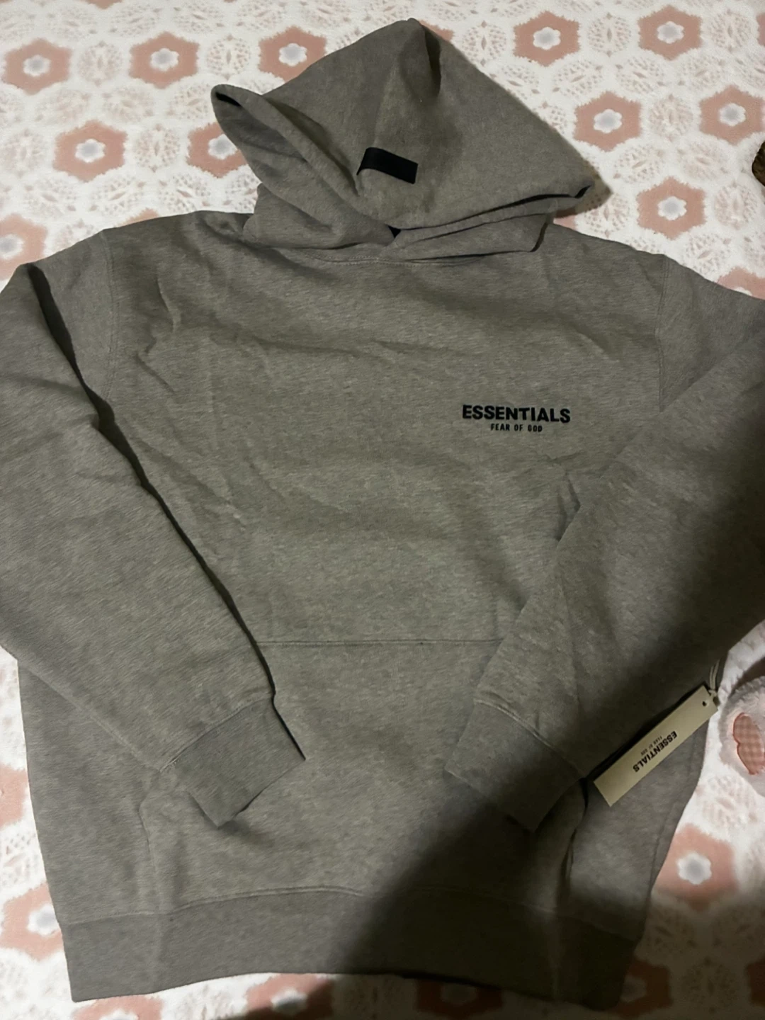 Selling a comfy Essentials Fear of God hoodie! It's a stylish and relaxed fit, perfect for everyday wear. The color is a versatile gray that goes with everything. Check out the photos for details!