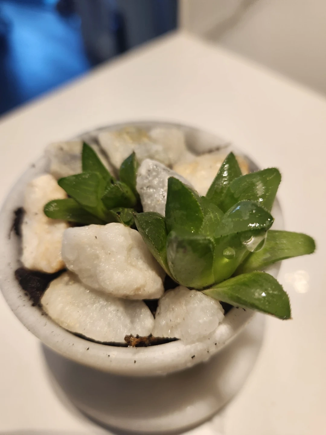 Tiny but mighty cute! This marble cup has been upcycled into a sweet little planter and comes with a low-maintenance succulent. Perfect for desks, shelves, or a small sunny windowsill.